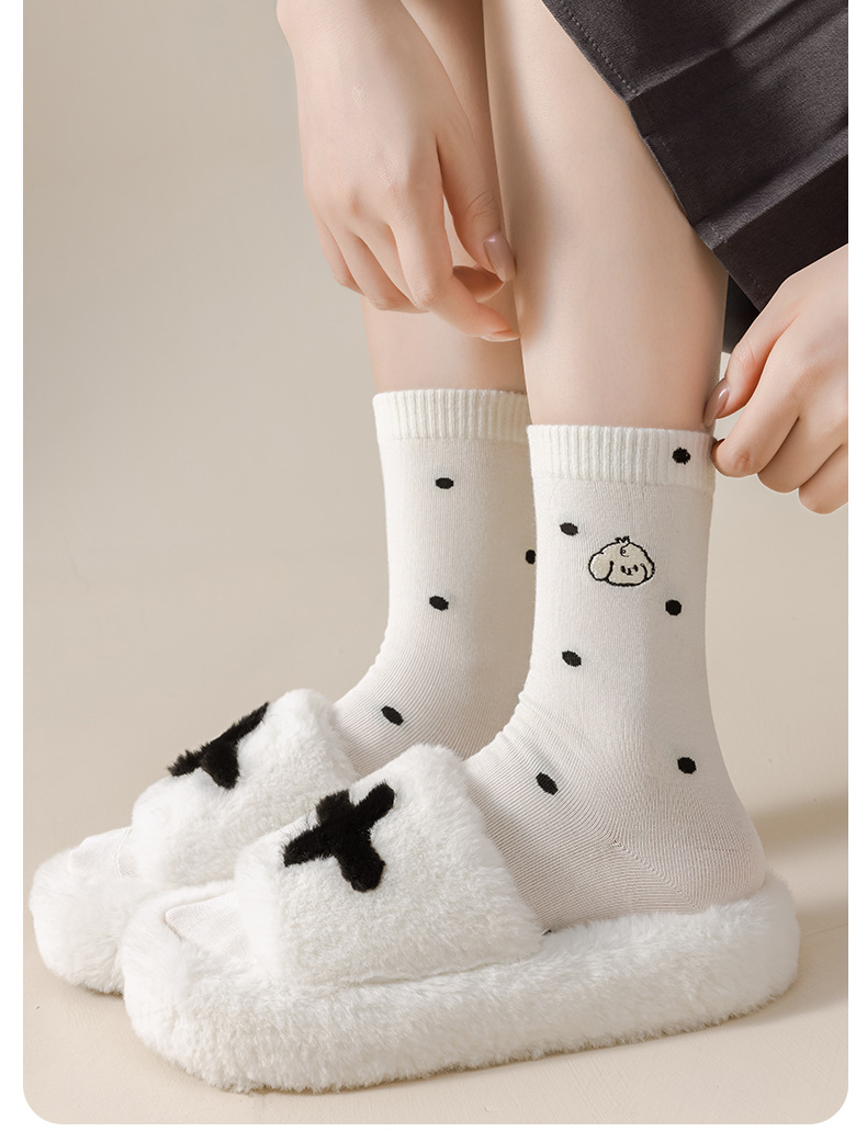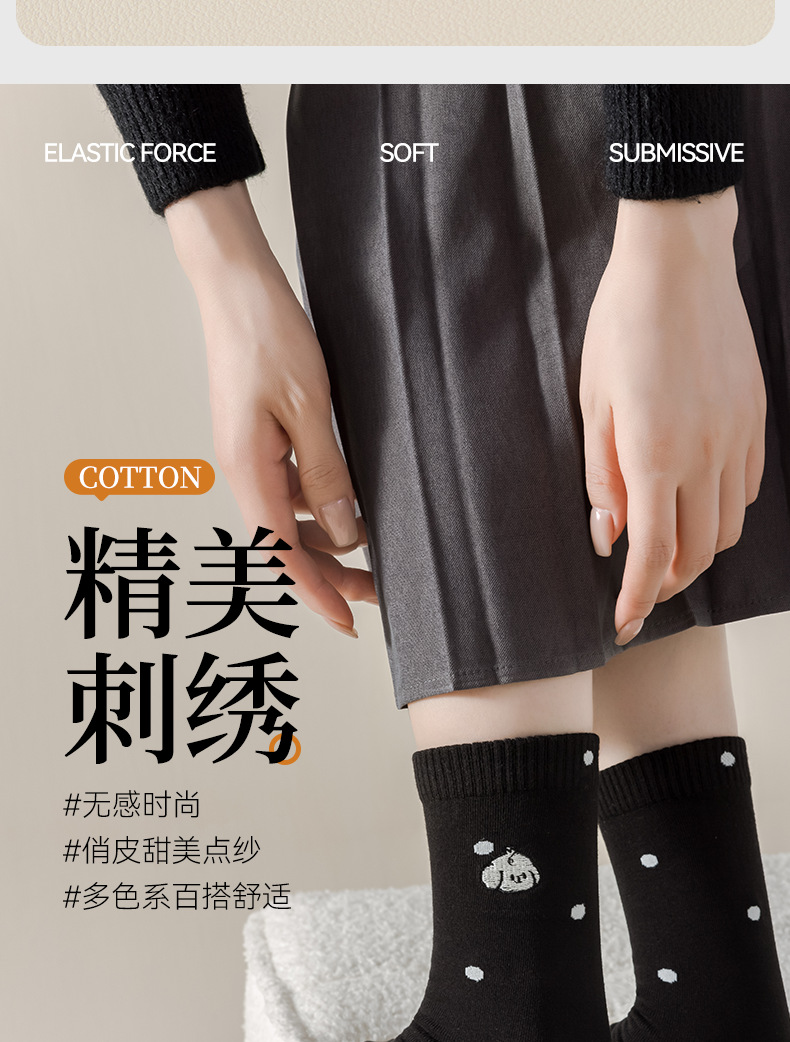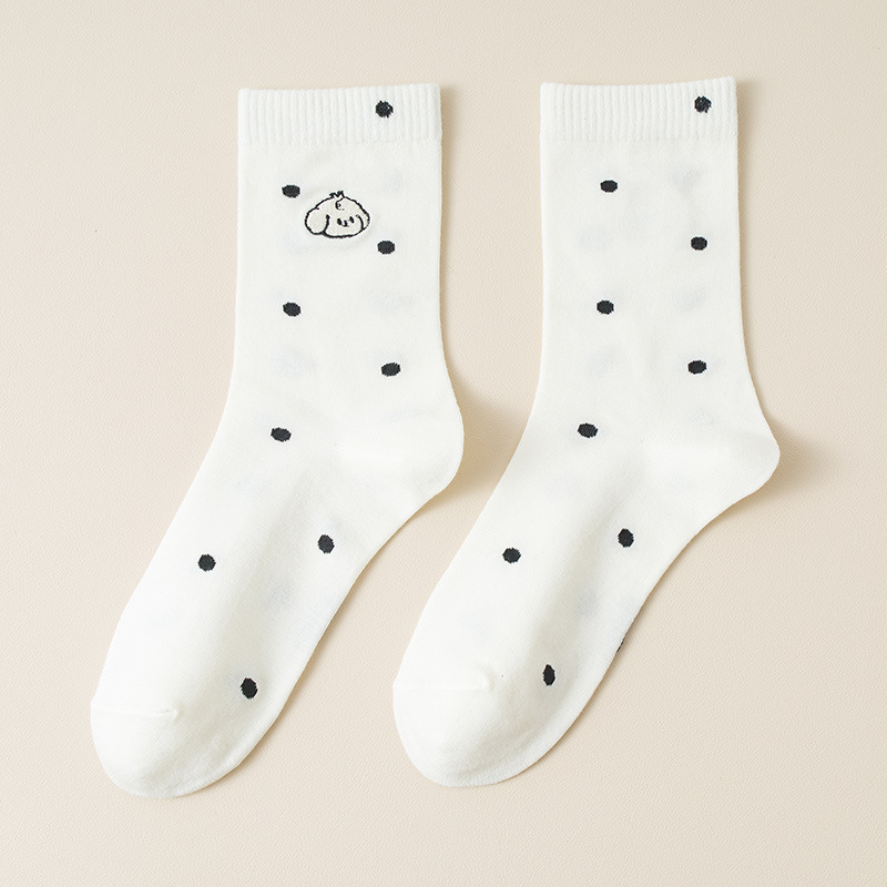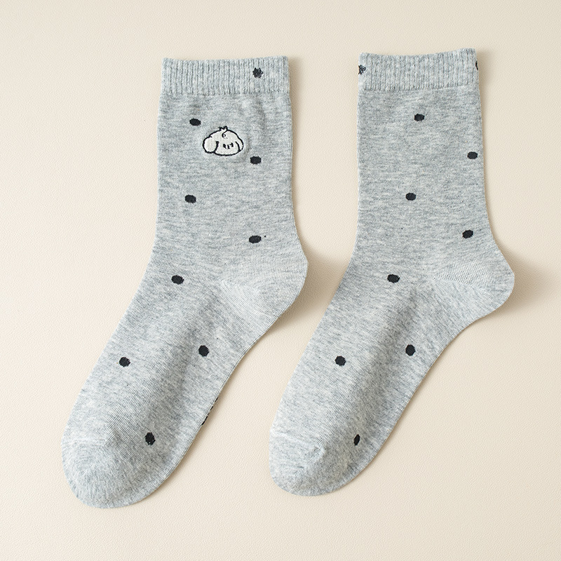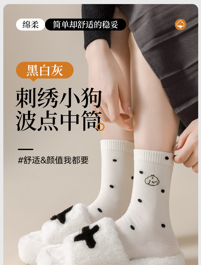 양말 가을과 겨울 여성면 튜브 양말 웨이브 포인트 강아지 자수 회색 뼈없는 더미 양말 도매 Zhuji 양말스토어 가기