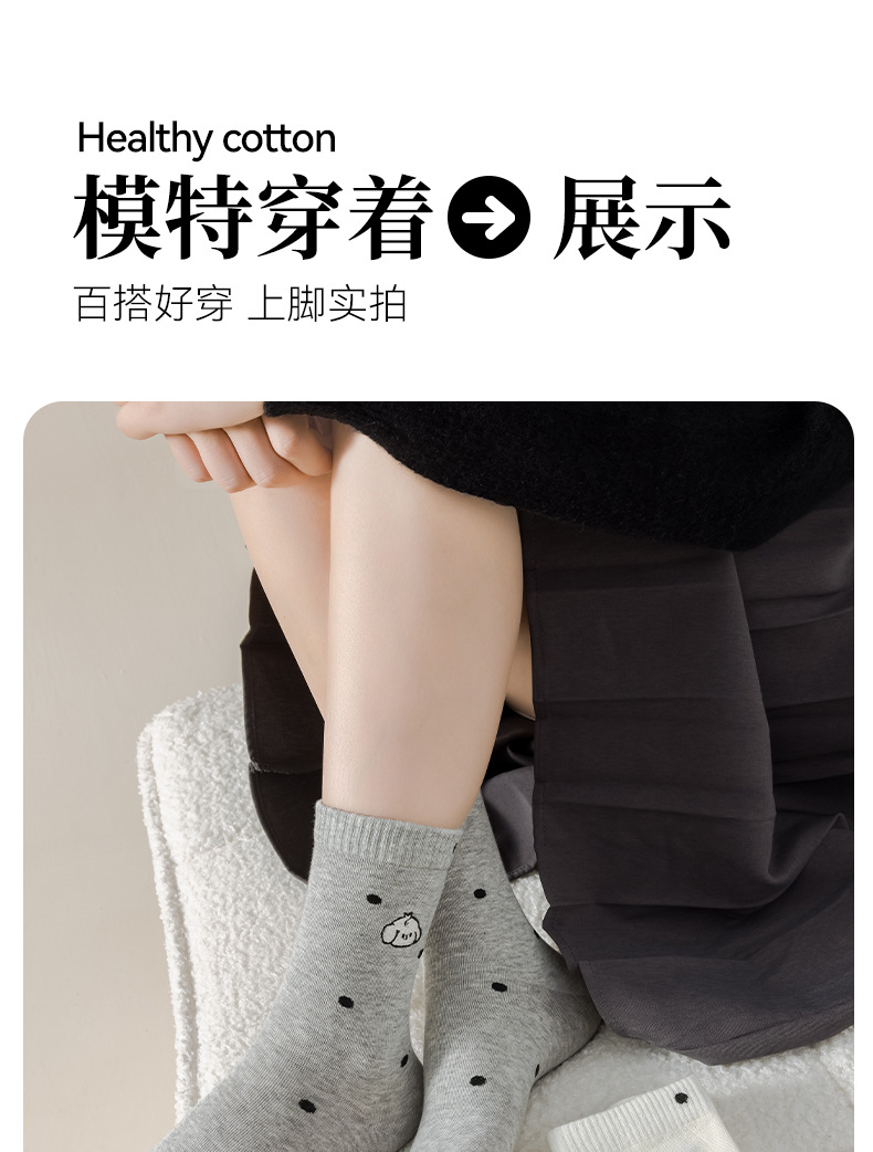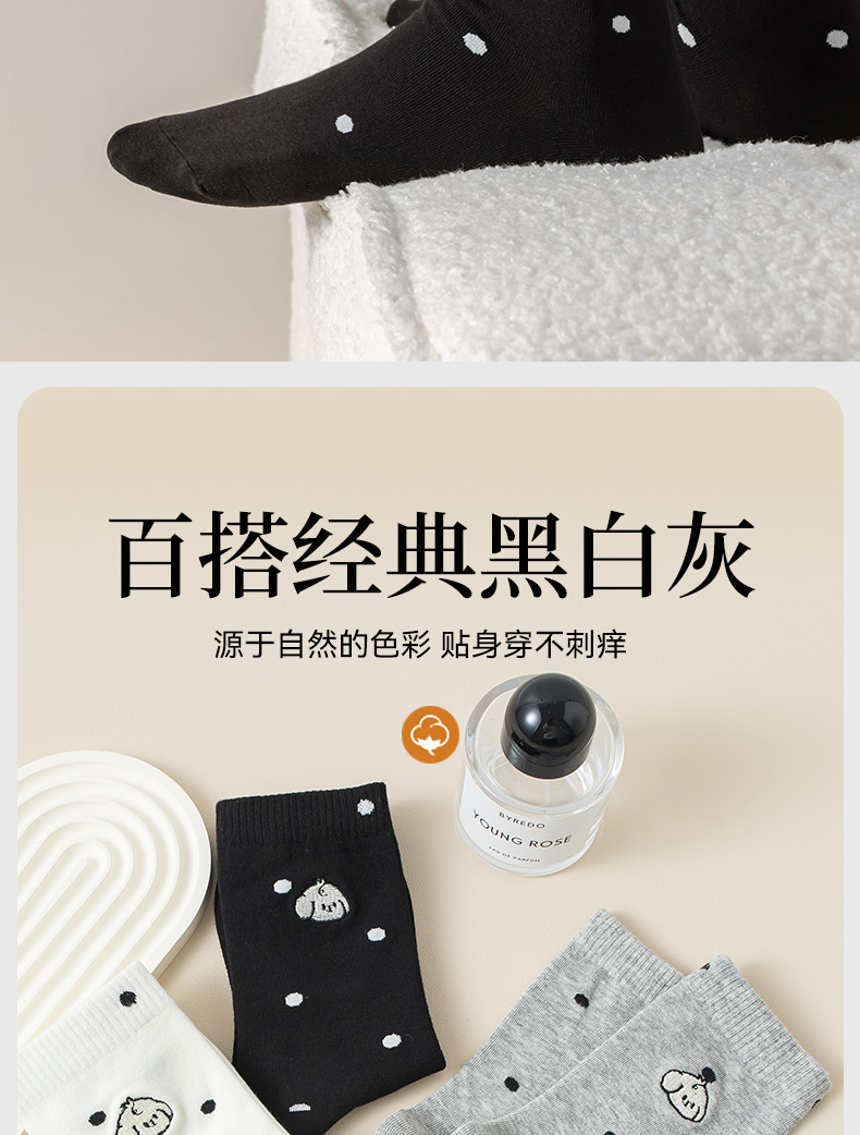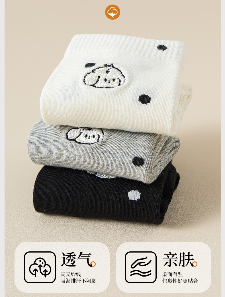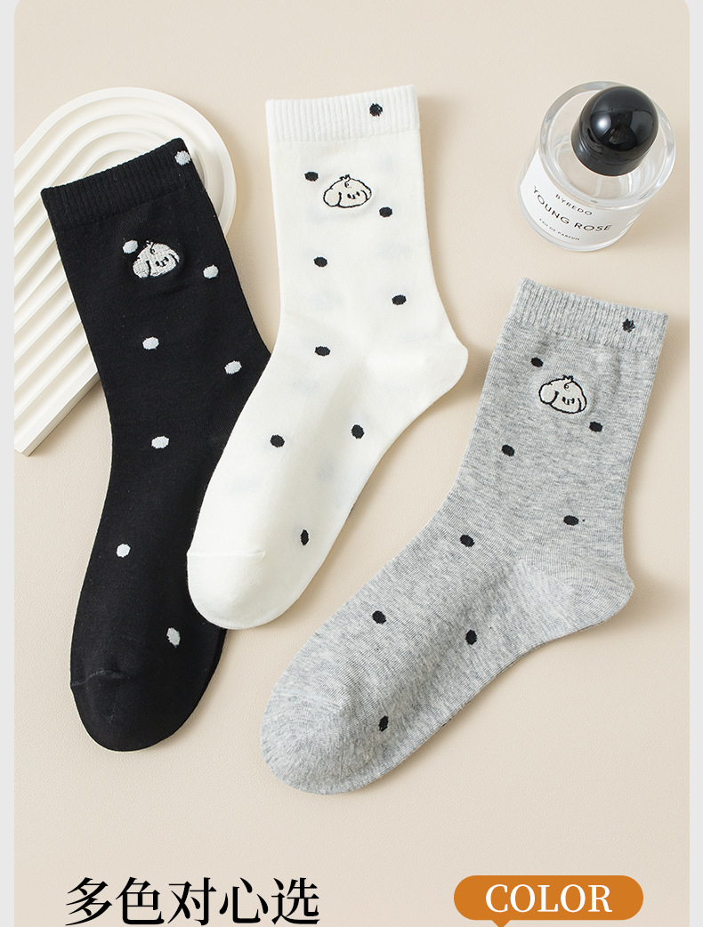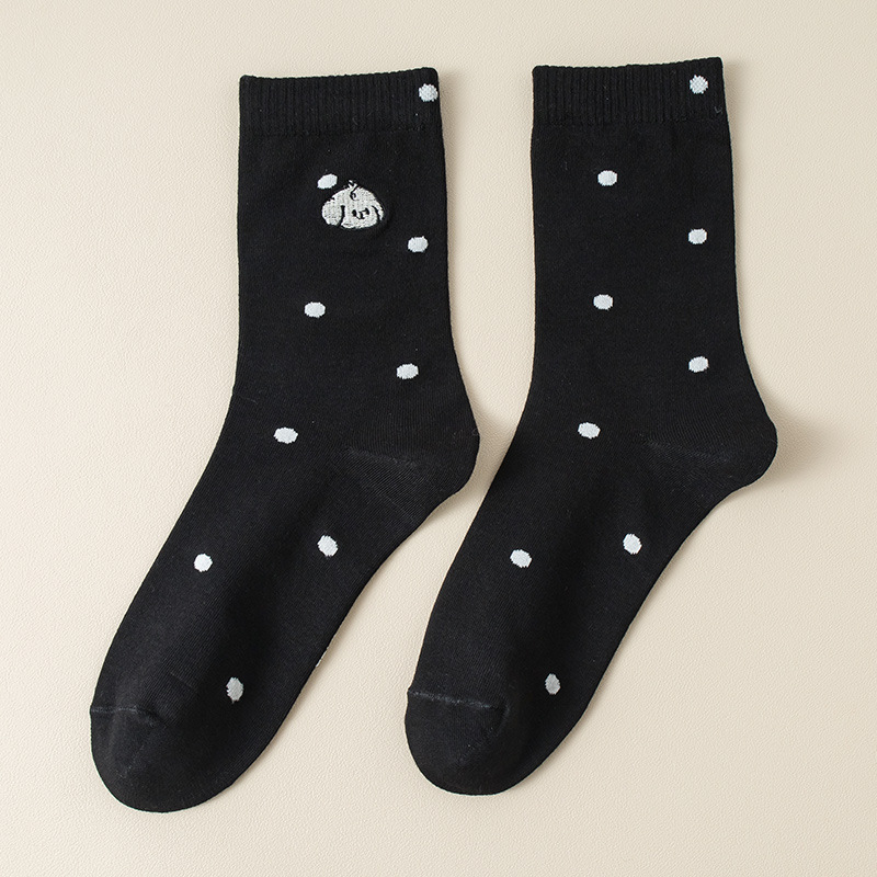 양말 가을과 겨울 여성면 튜브 양말 웨이브 포인트 강아지 자수 회색 뼈없는 더미 양말 도매 Zhuji 양말스토어 가기