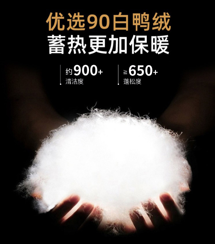 全身填充90白鸭绒,”嘎嘎“暖,更轻更柔软!