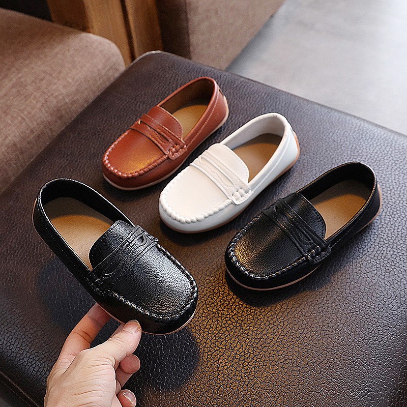 영국 어린이 작은 가죽 신발 복고풍 소년 캐주얼 콩 신발 2024 봄과 가을 새로운 패션 소프트 솔 신발 도매