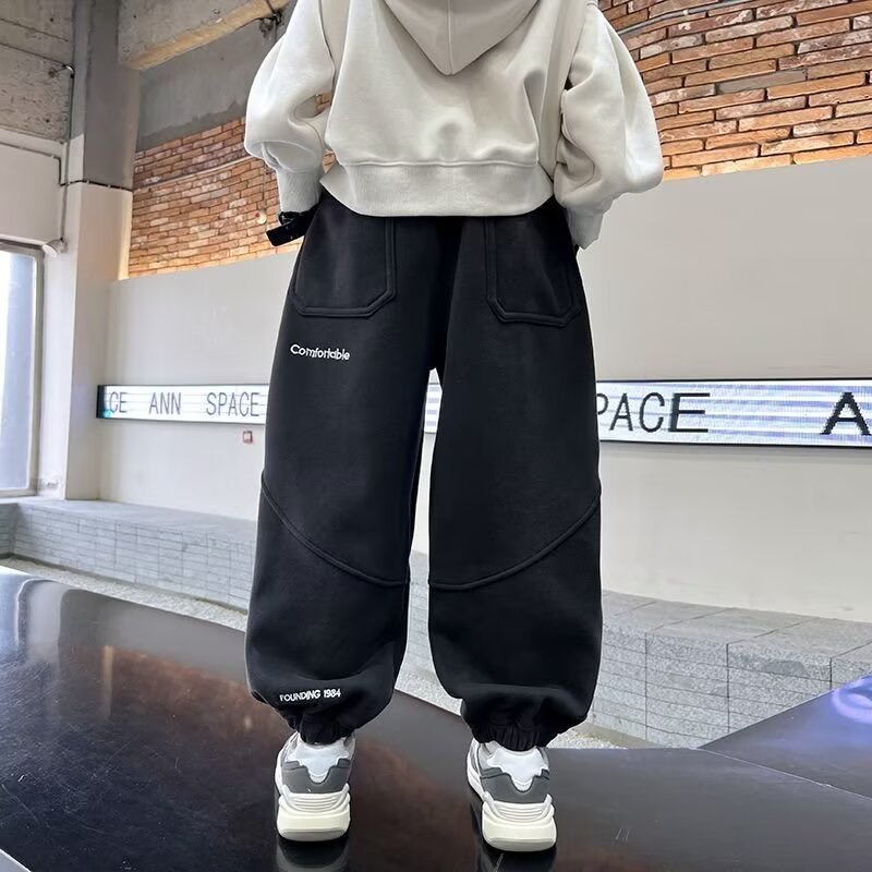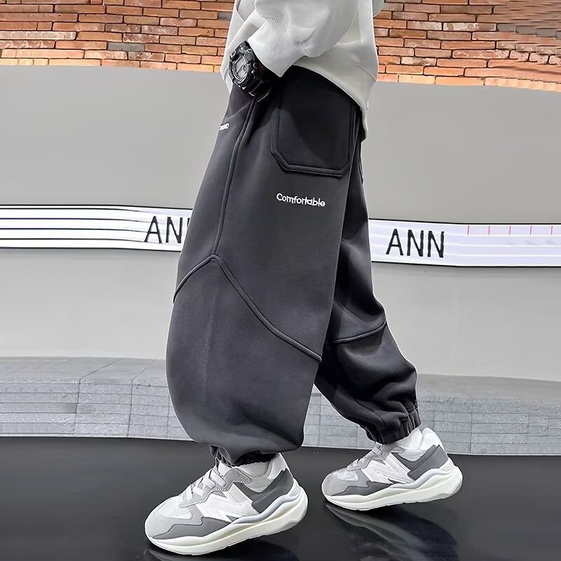 아동복 가을 대형 어린이 운동복 2024 새로운 패션 소년 바느질 디자인 느슨한 편지 인쇄 운동복