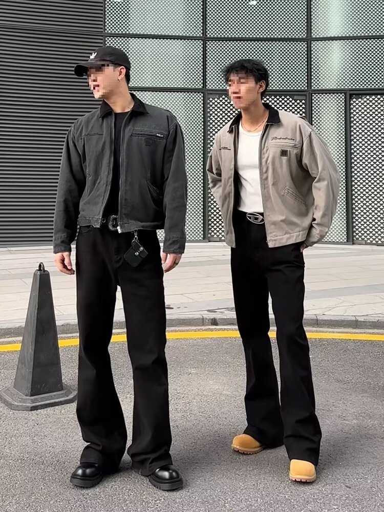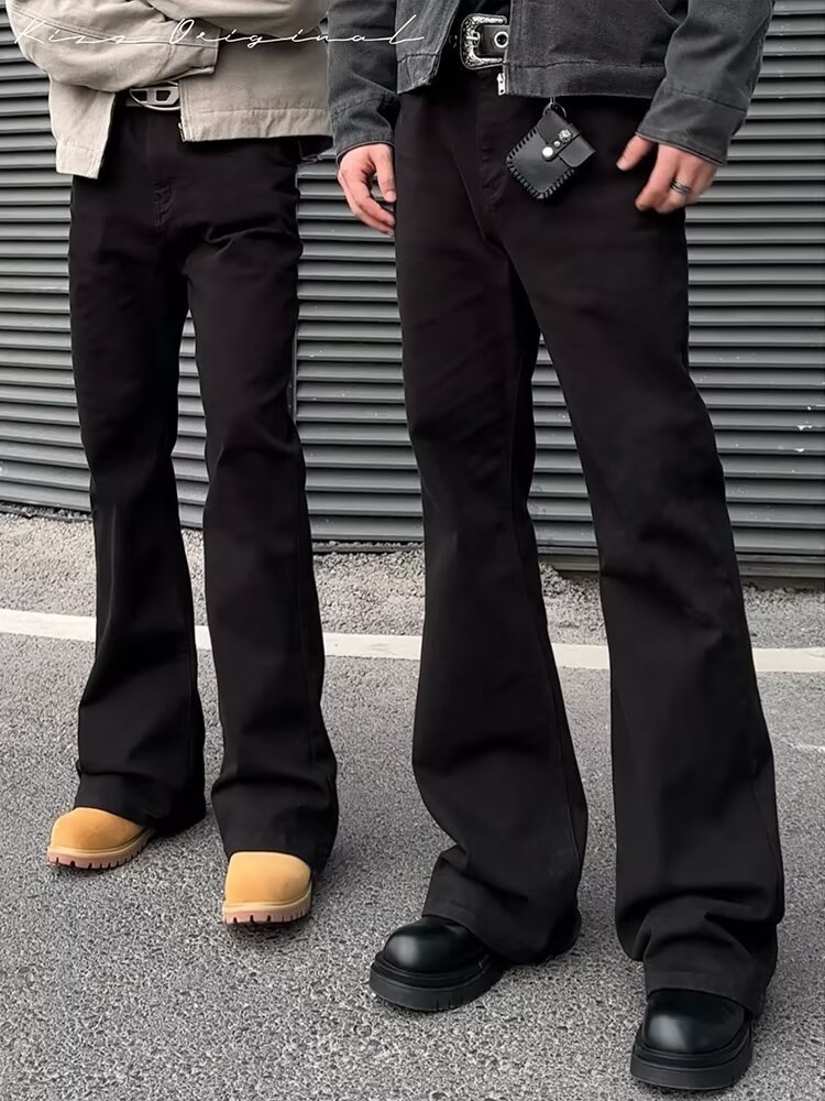 블랙 기모 스트레이트 팬츠 Slair Jeans 남성용 클린 핏 아메리칸 스타일 하이 스트리트 스트레치 하이 허리 슬림 바지스토어 가기