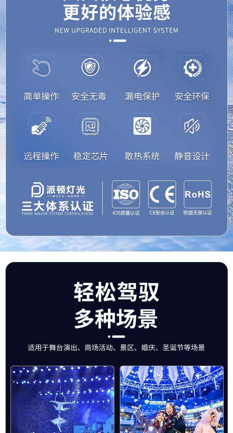 • 【듀얼 분사구/목재 포장 + 눈꽃 오일 3통】 4000W 스탠드형 눈꽃 제조기