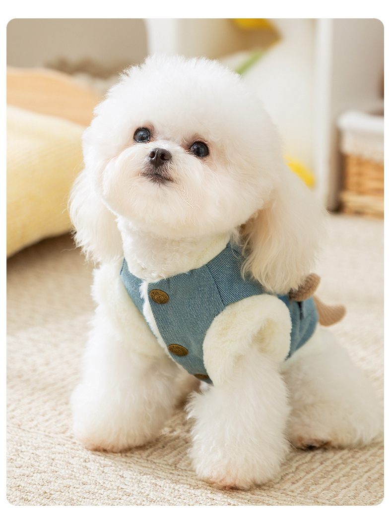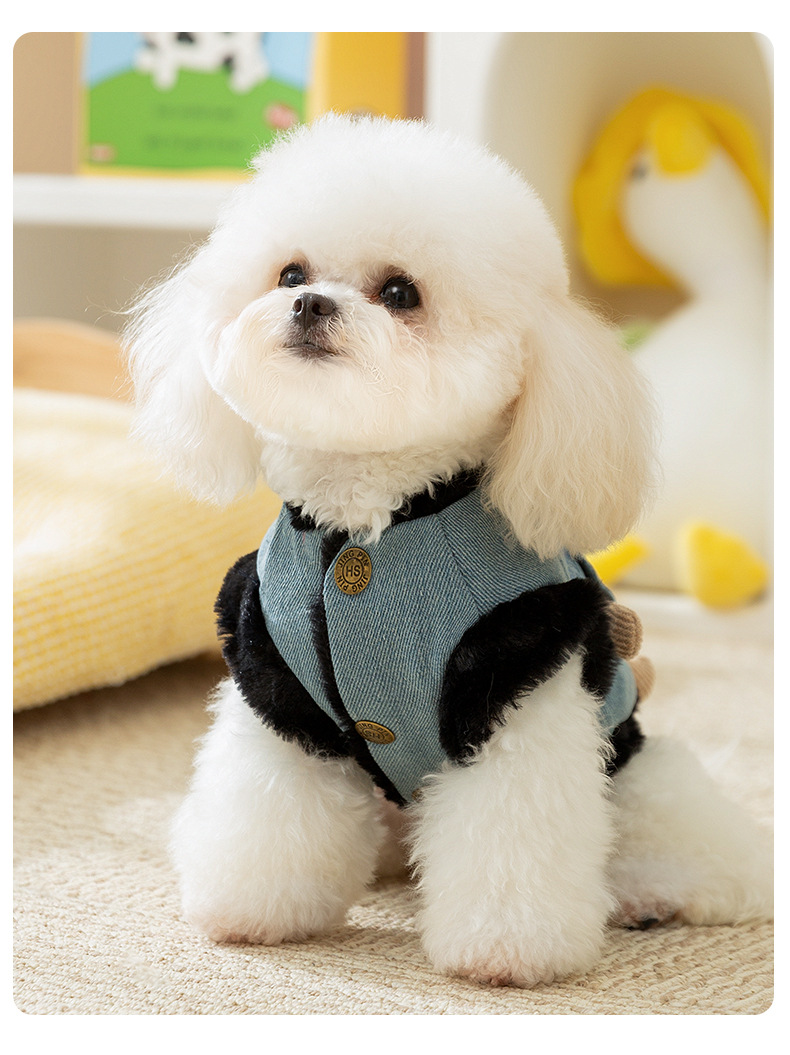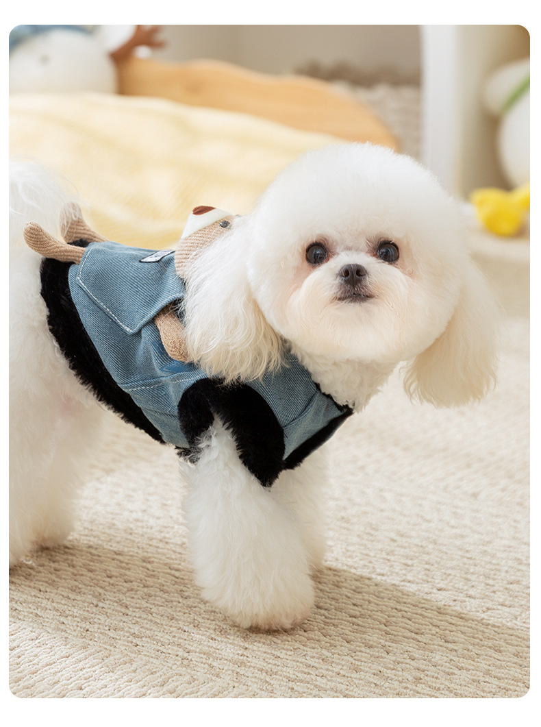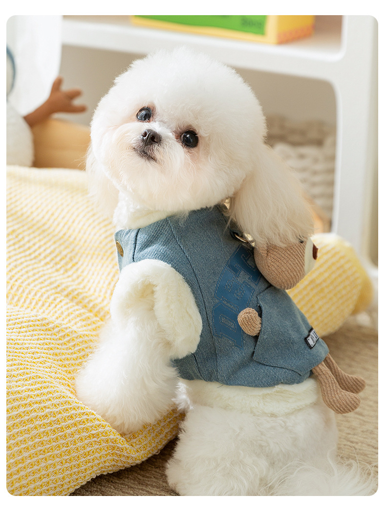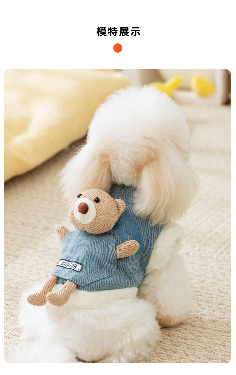 개 옷 가을과 겨울 포켓 입체 곰 데님 견인 조끼 테디 베어 작은 개 애완 동물 옷스토어 가기