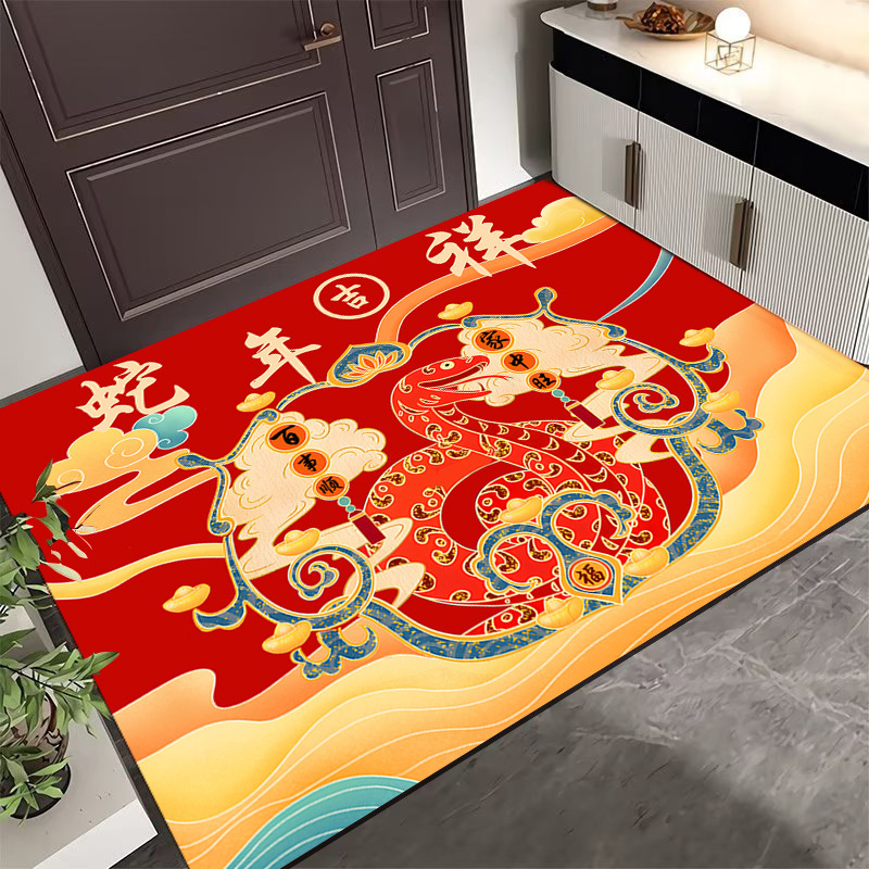 2025 년 뱀 새해 매트 입구 축제 발 매트 도어 도어 매트 인테리어 실크 서클 카펫 바닥 트레드스토어 가기