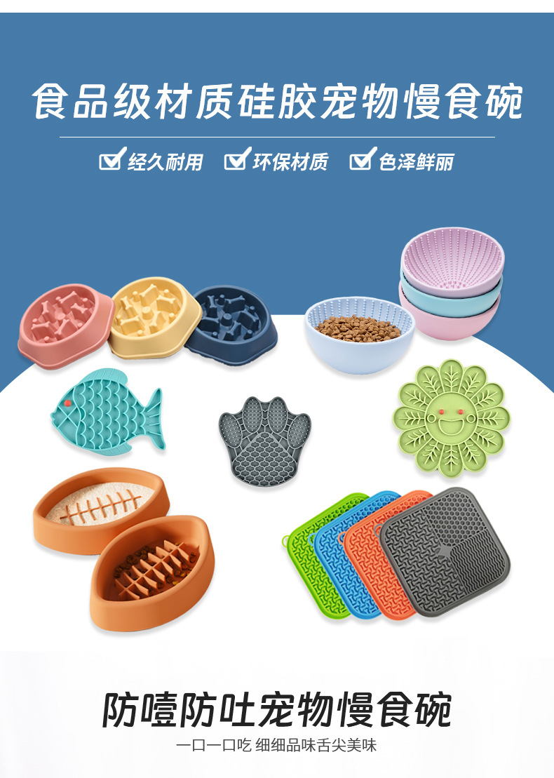 개와 고양이를 위한 제조업체 맞춤형 실리콘 애완동물 그릇, 물림 방지 느린 먹는 그릇, 접이식 애완동물 식기, 개 그릇, 고양이 그릇