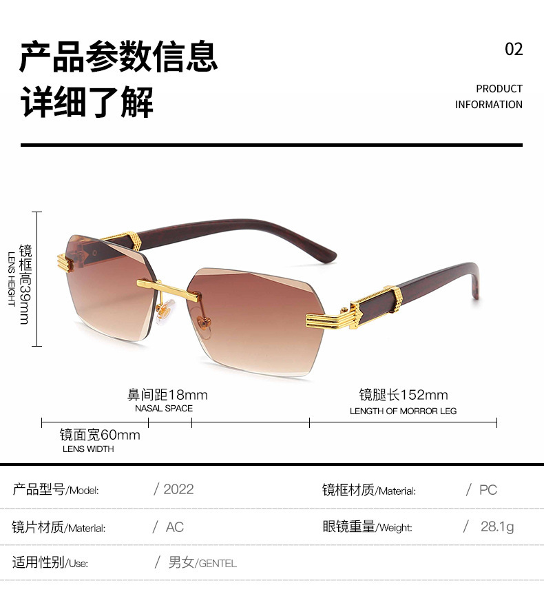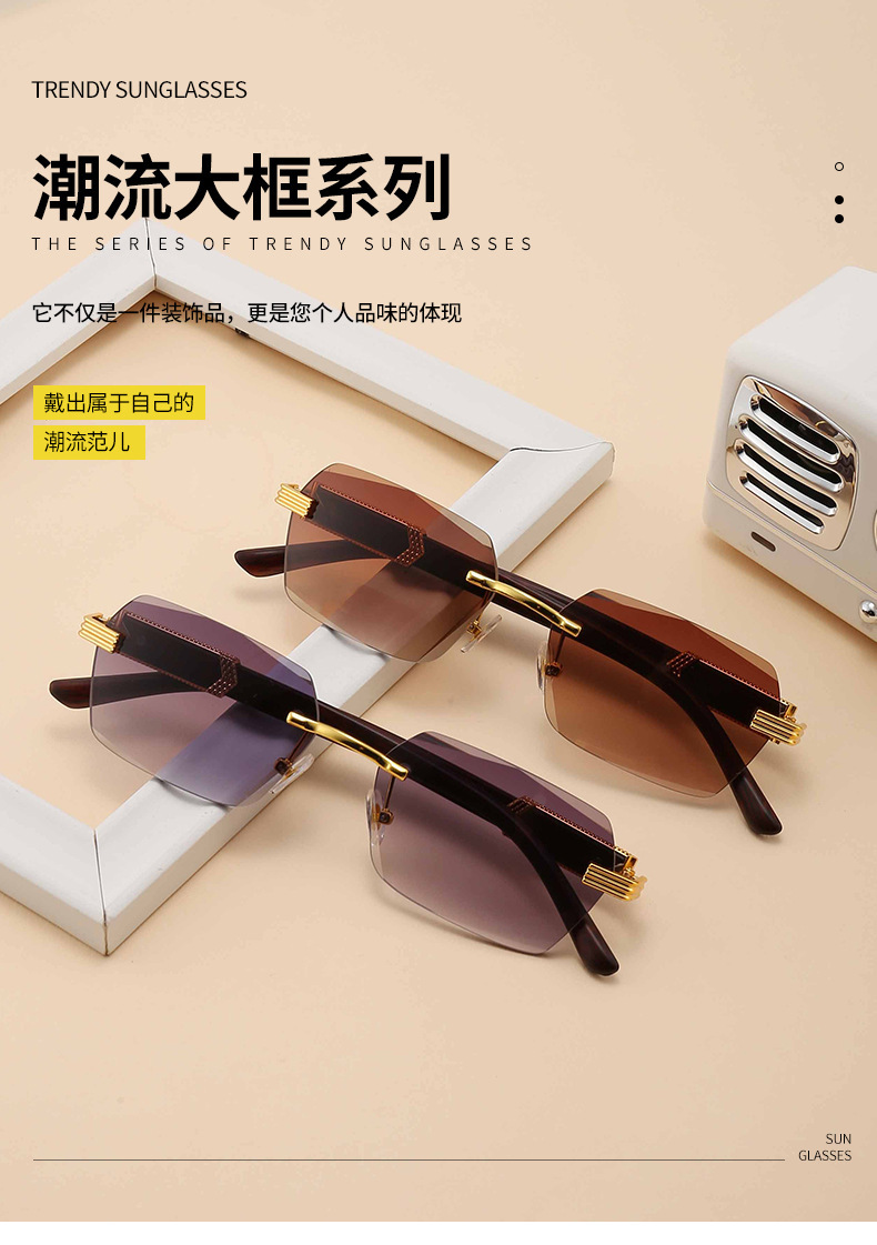 9050 사각형 안경 무테 컷 엣지 선글라스 여성 유럽과 미국의 패션 안경 그라디언트 색상 선 스크린 선글라스스토어 가기