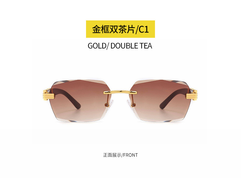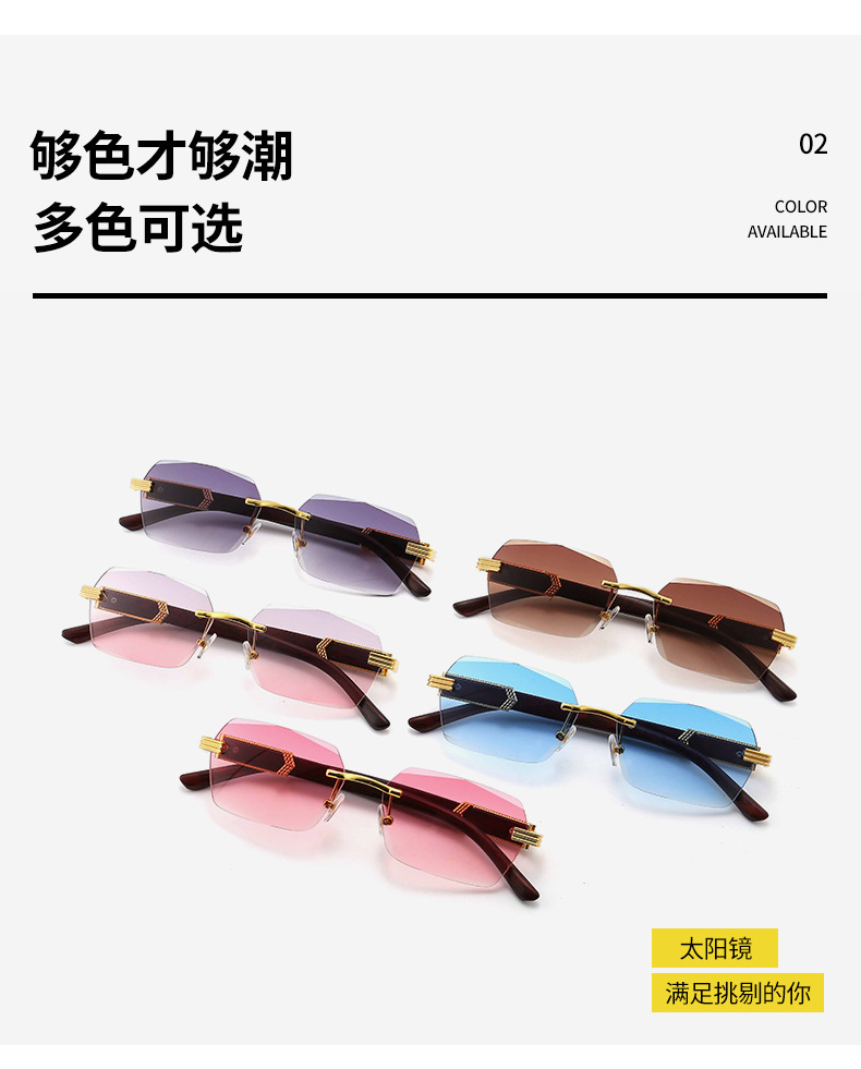 9050 사각형 안경 무테 컷 엣지 선글라스 여성 유럽과 미국의 패션 안경 그라디언트 색상 선 스크린 선글라스