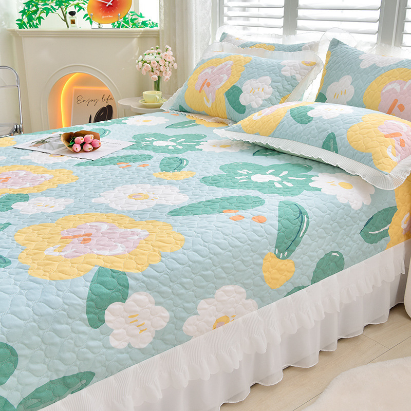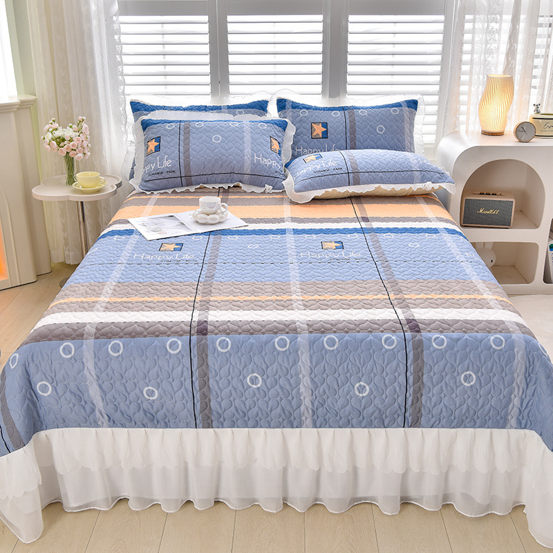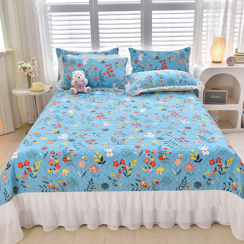 새로운 이중 레이스 사계절 누빔 침대 커버 한국 스타일 공주풍 침대 시트 침대 커버 침대보 3~4종 세트 통기성스토어 가기