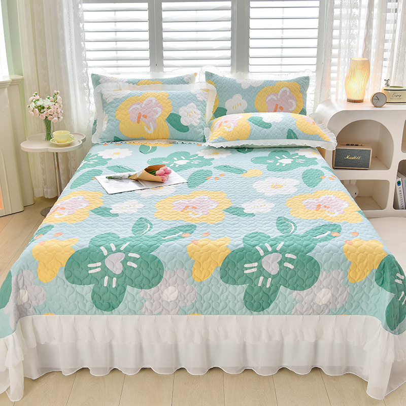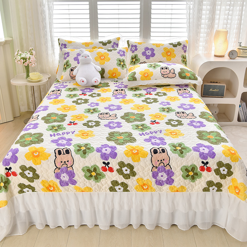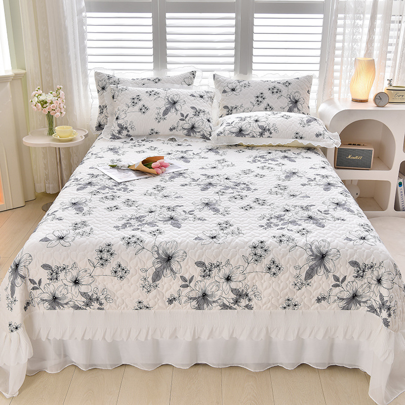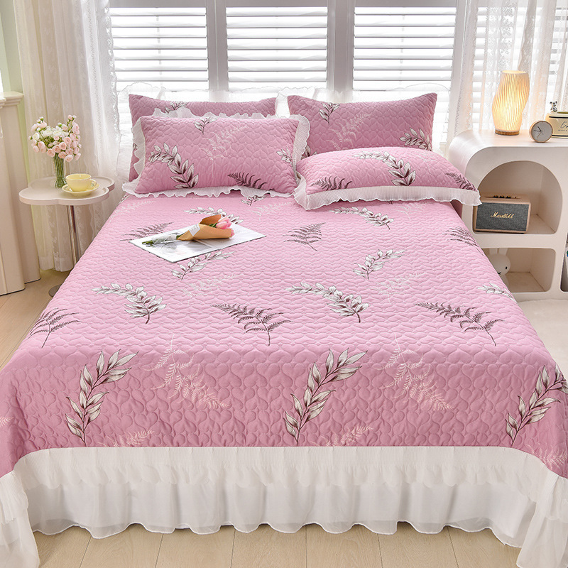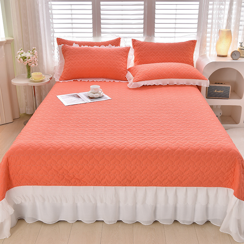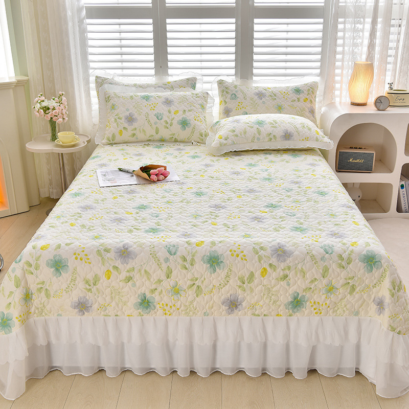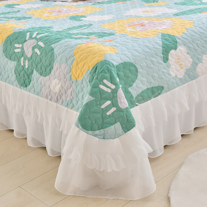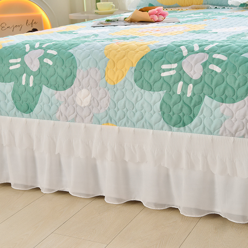새로운 이중 레이스 사계절 누빔 침대 커버 한국 스타일 공주풍 침대 시트 침대 커버 침대보 3~4종 세트 통기성