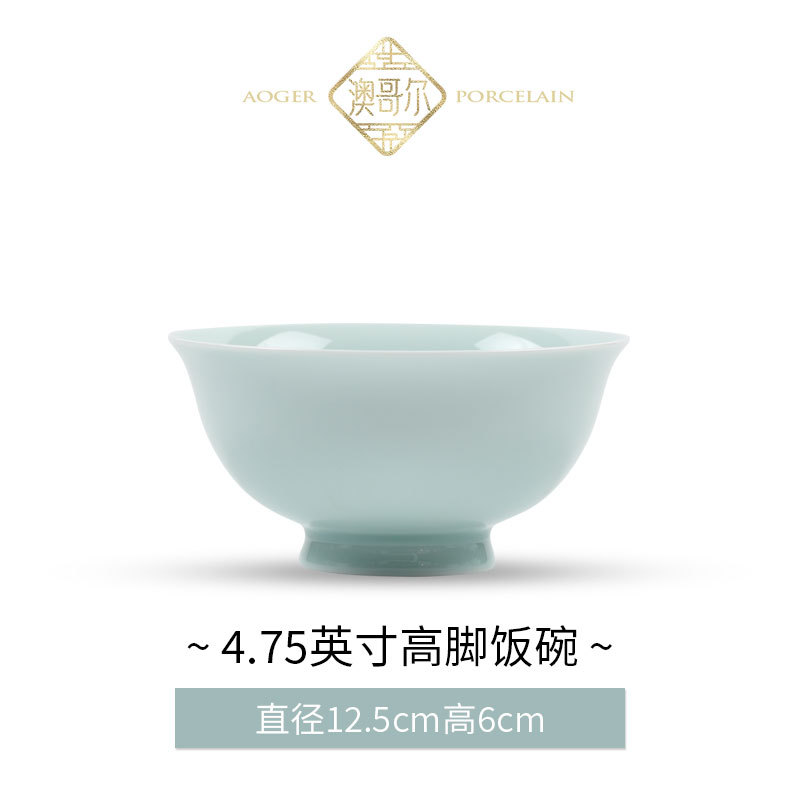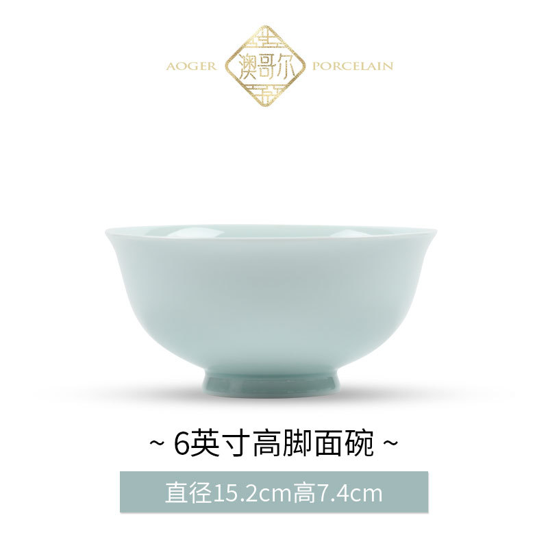 Jingdezhen 식기 싱글 사발 가정용 청자 높은 흰색 머드 언더 글레이즈 컬러 중국식 세라믹 요리 및 요리 디너 볼 국수 그릇스토어 가기