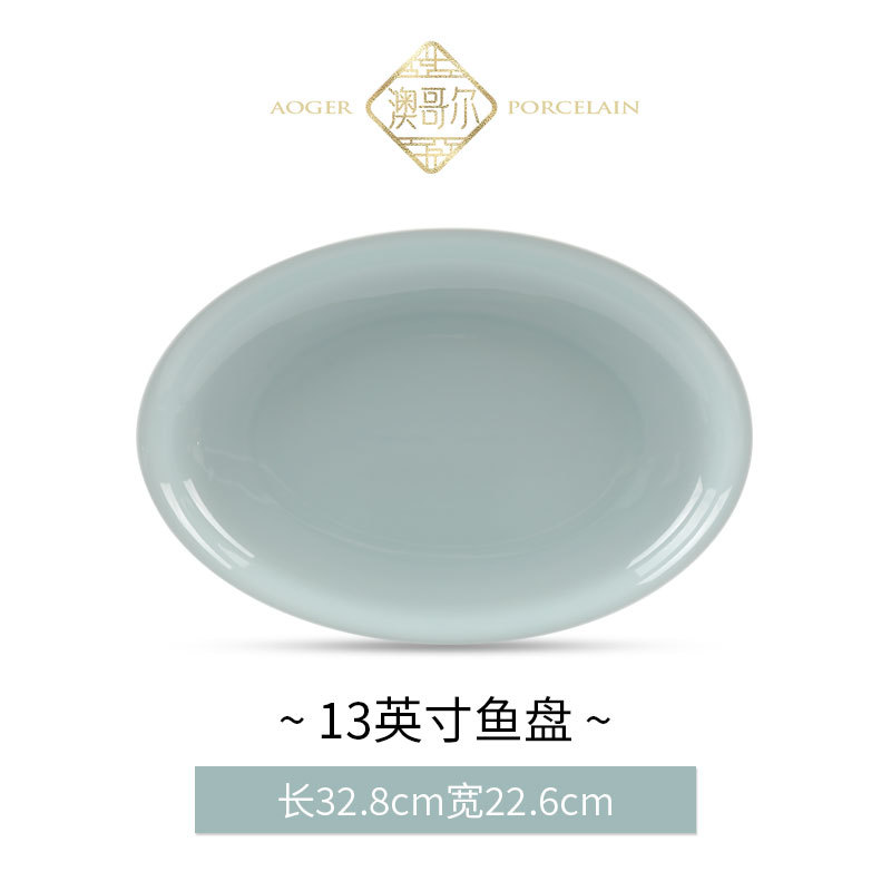 • Qinglin Wujin Edge 13inch 물고기 접시, 고백색 점토로 유약 처리, 전자레인지 및 식기세척기 사용 가능