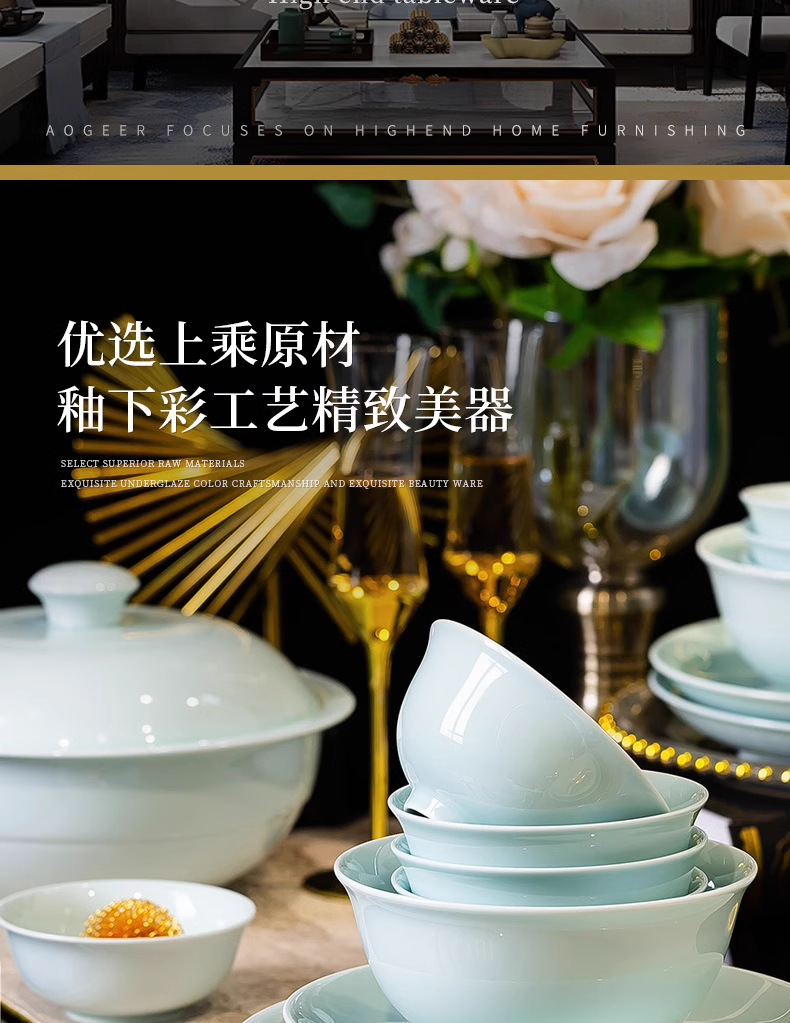 Jingdezhen 식기 싱글 사발 가정용 청자 높은 흰색 머드 언더 글레이즈 컬러 중국식 세라믹 요리 및 요리 디너 볼 국수 그릇