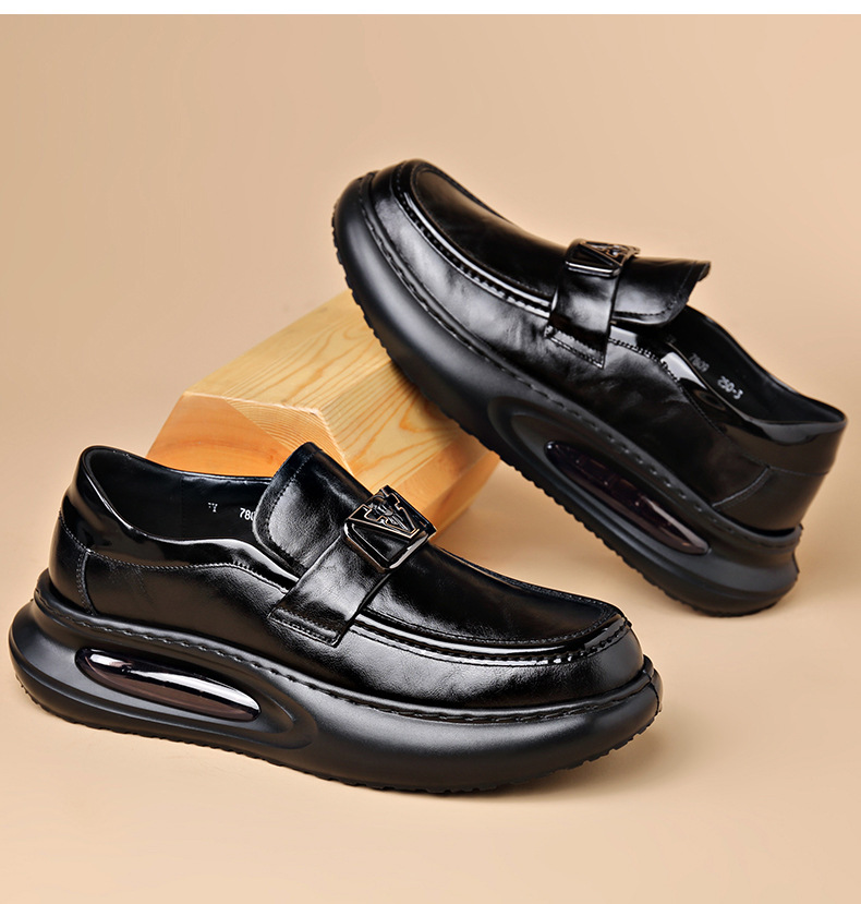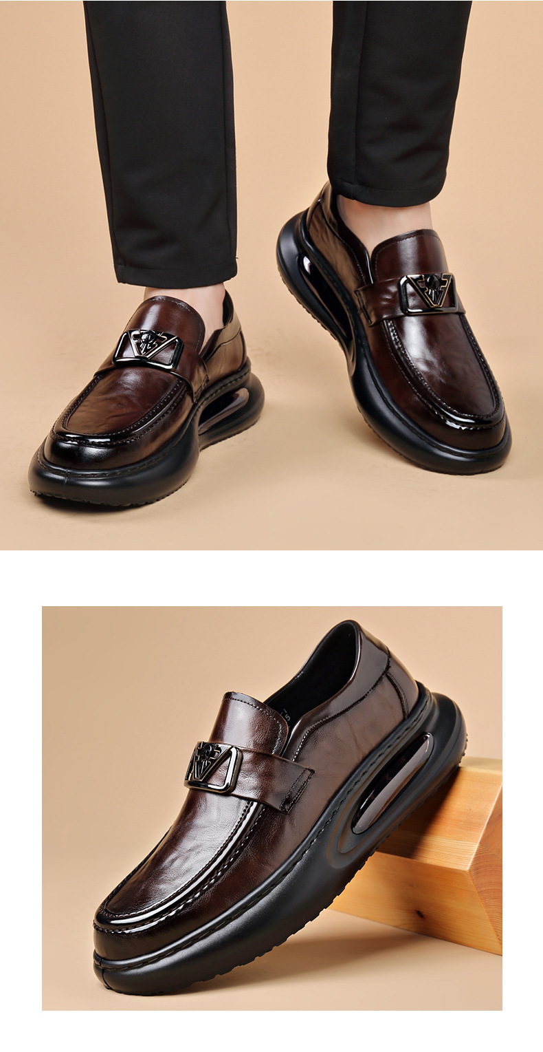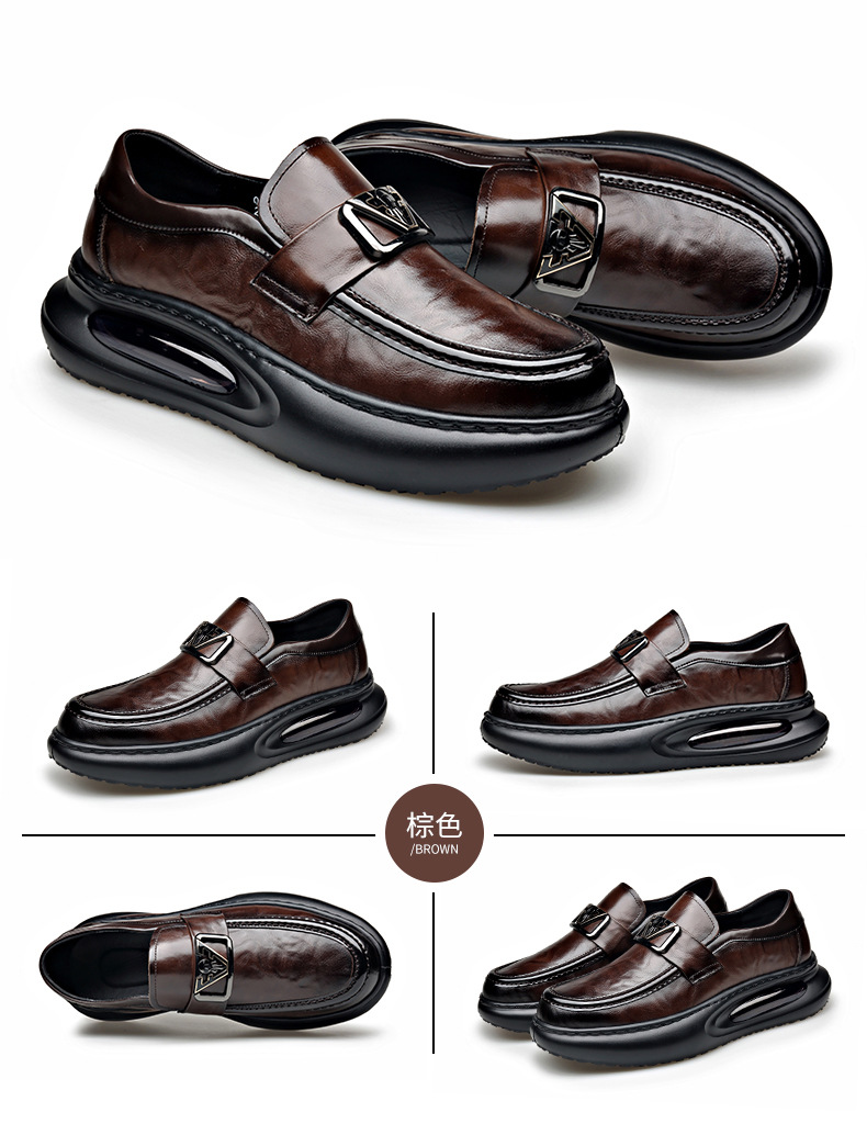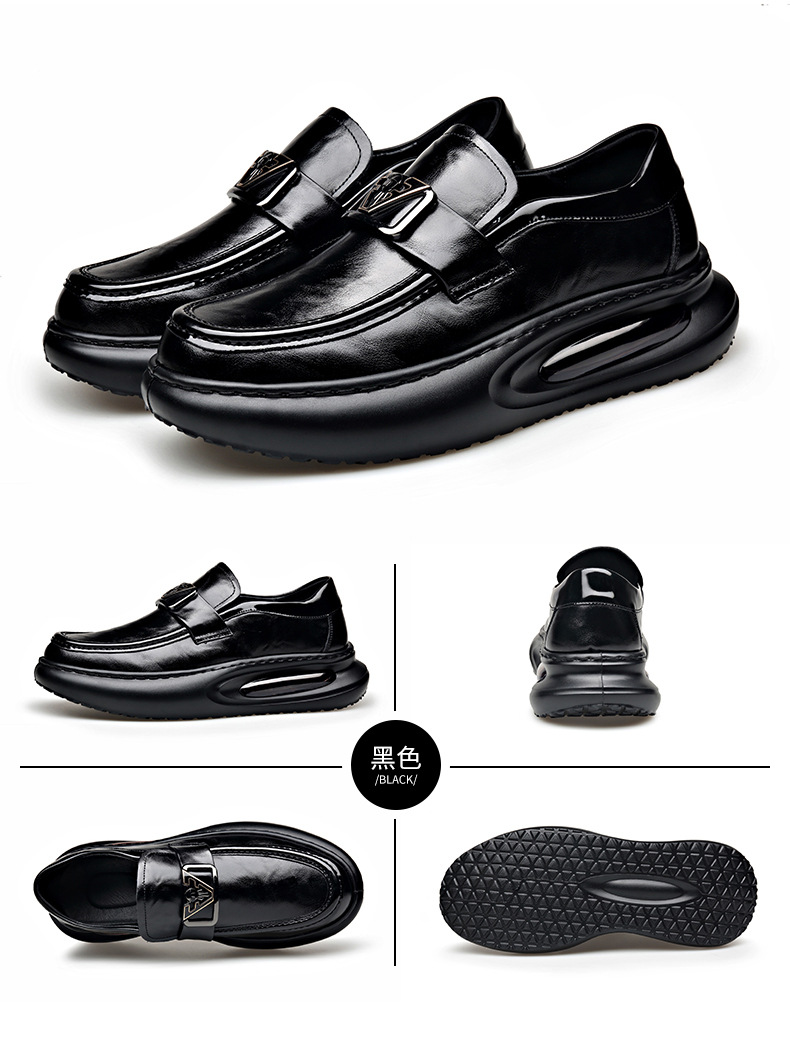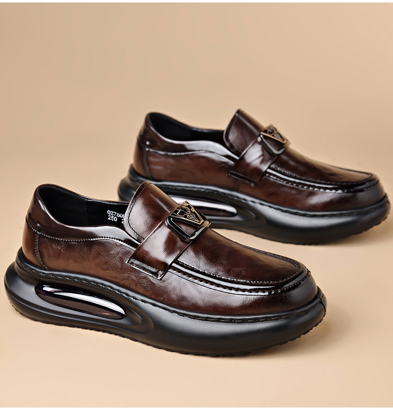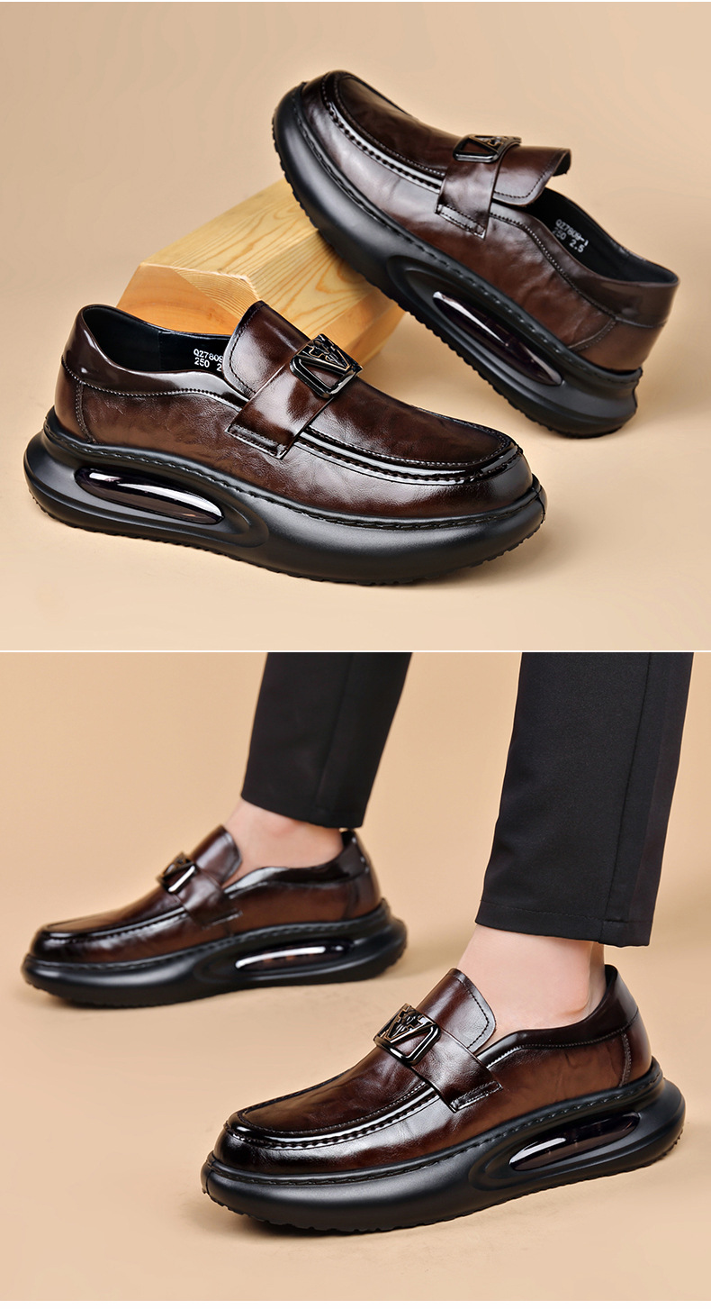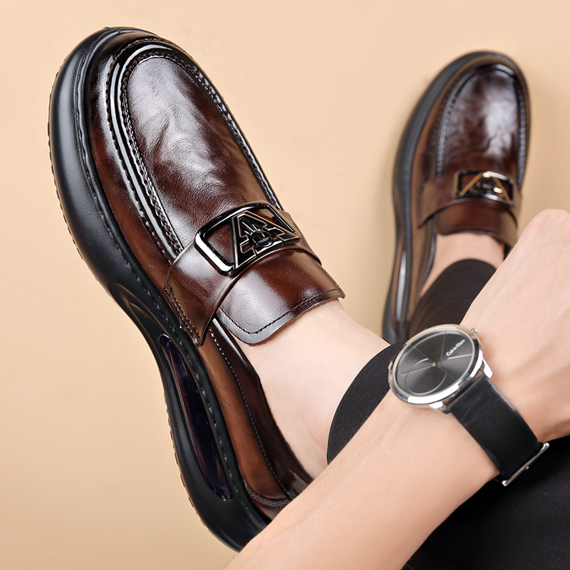 에어 쿠션 남성 신발 수제 정품 가죽 사업 캐주얼 가죽 신발 남성용 영국 두꺼운 밑창 증가 단층 신발 슬립 온 게으른 신발스토어 가기