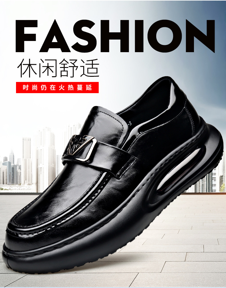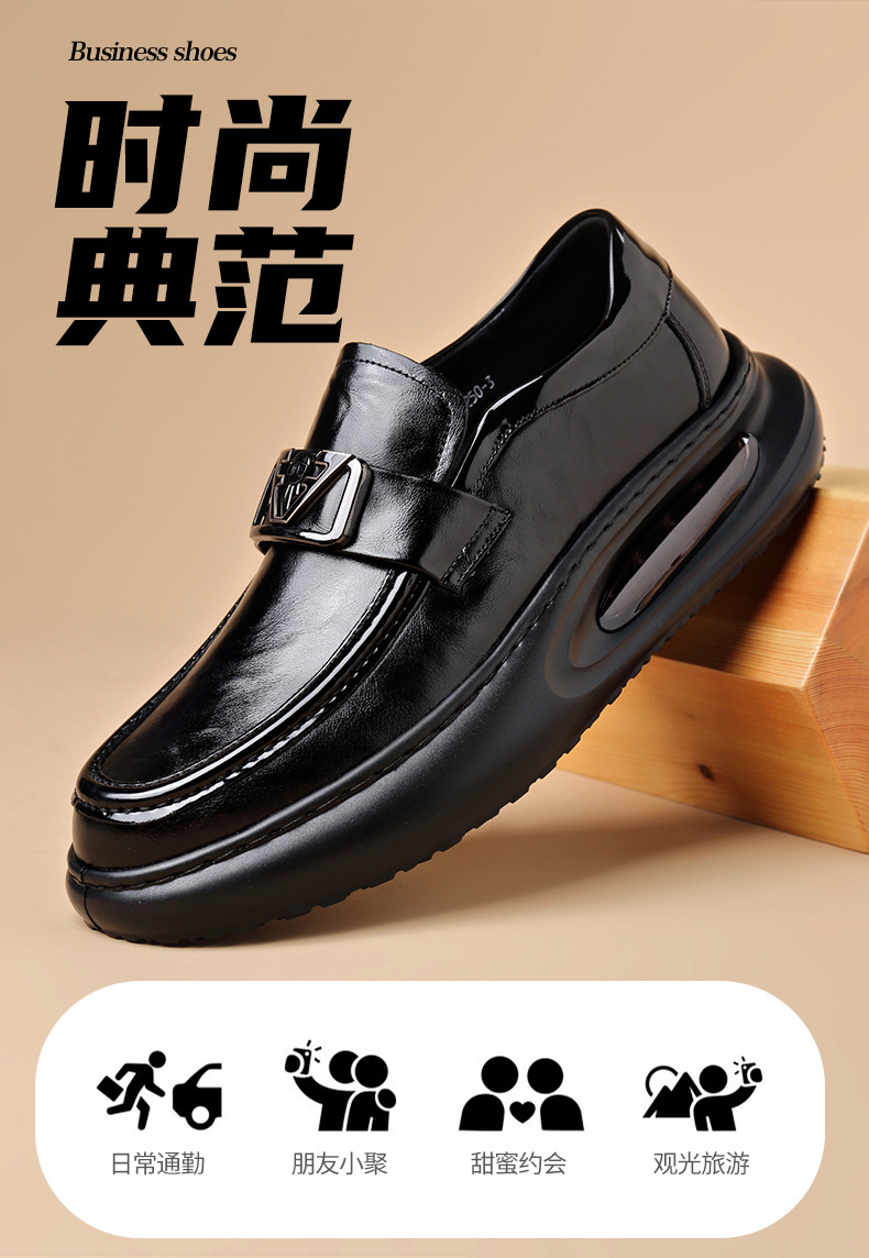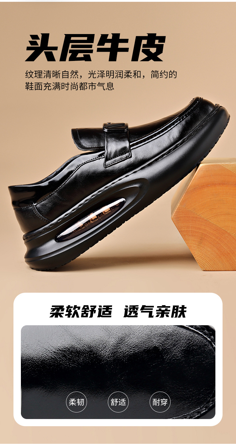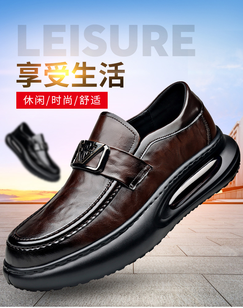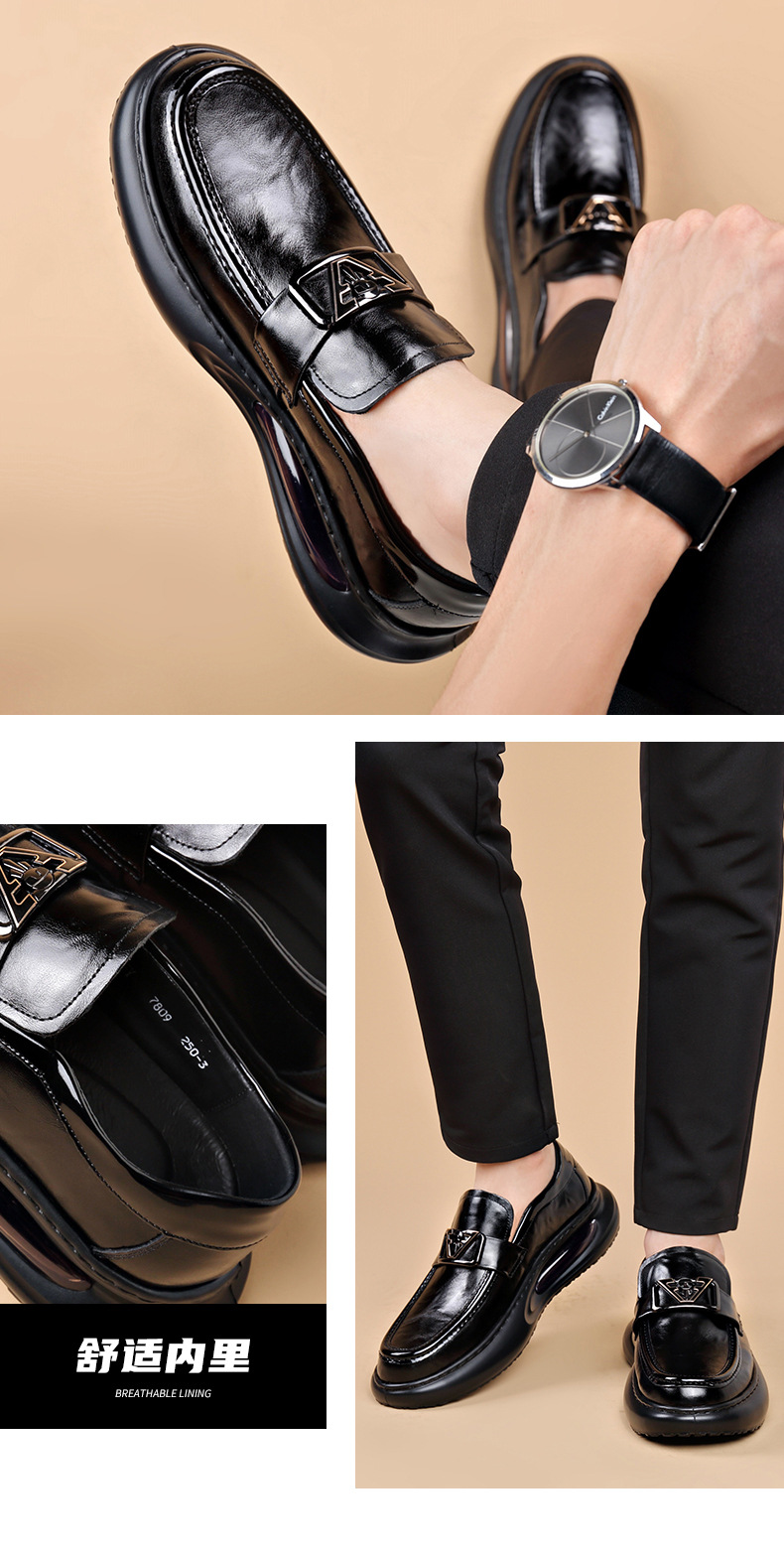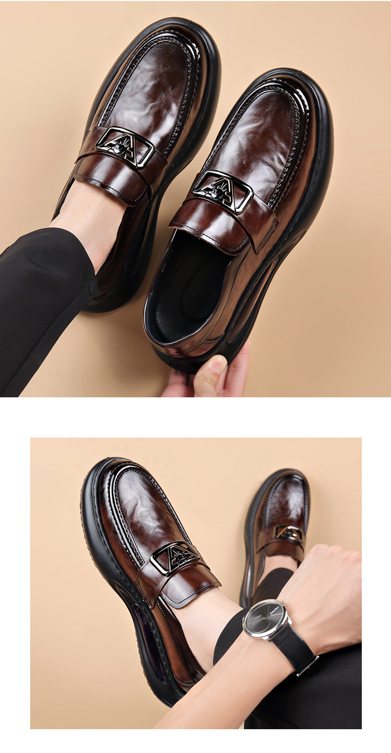 에어 쿠션 남성 신발 수제 정품 가죽 사업 캐주얼 가죽 신발 남성용 영국 두꺼운 밑창 증가 단층 신발 슬립 온 게으른 신발스토어 가기