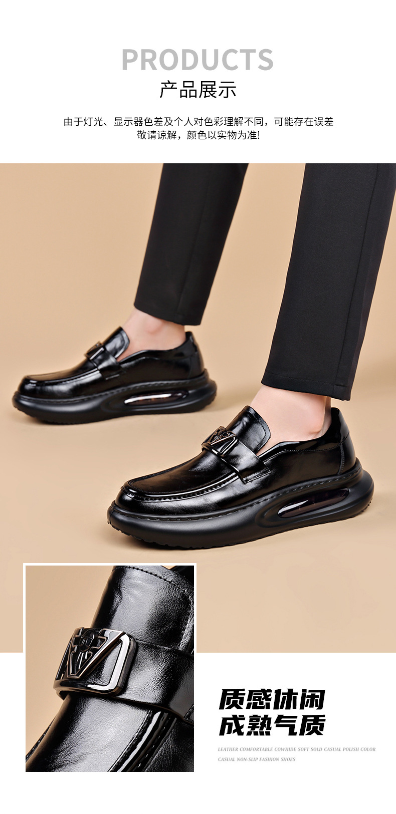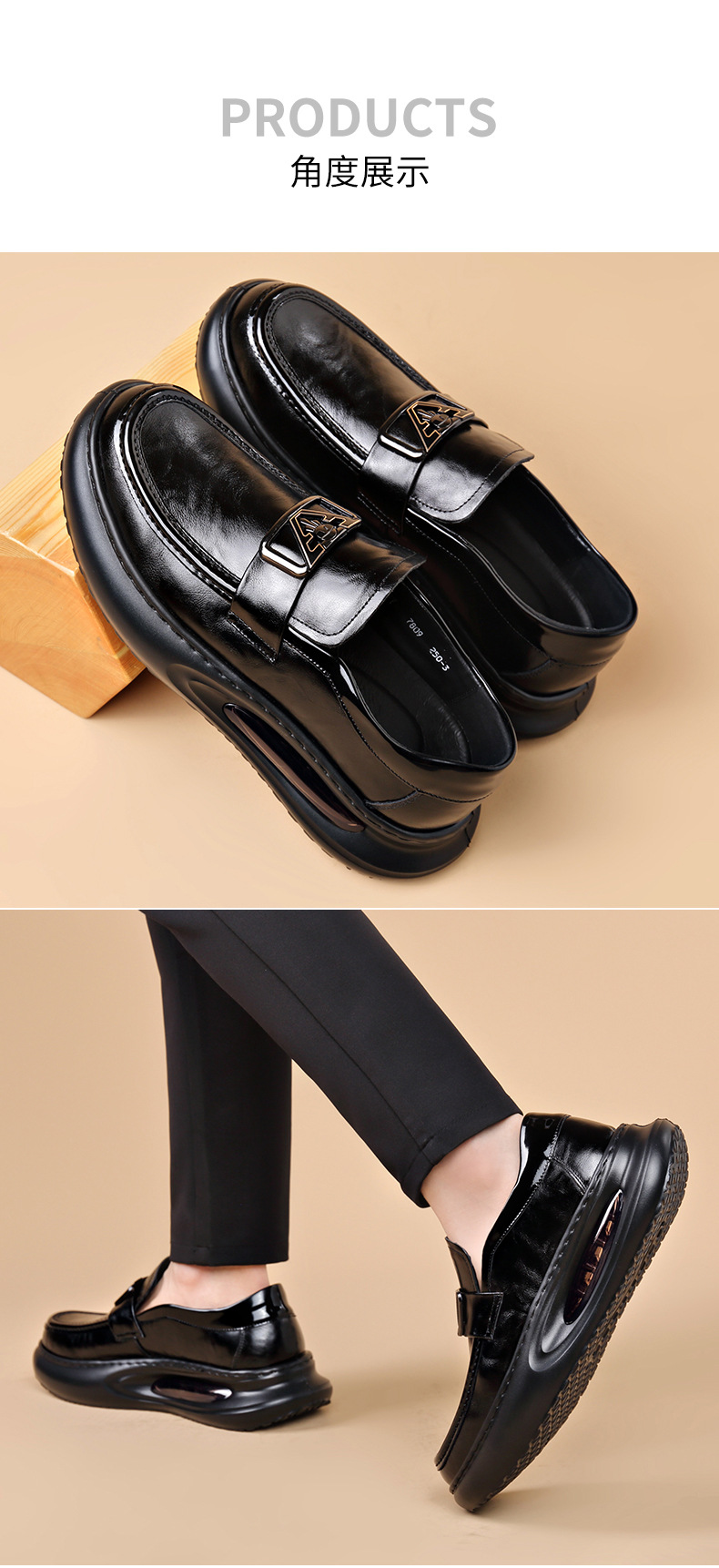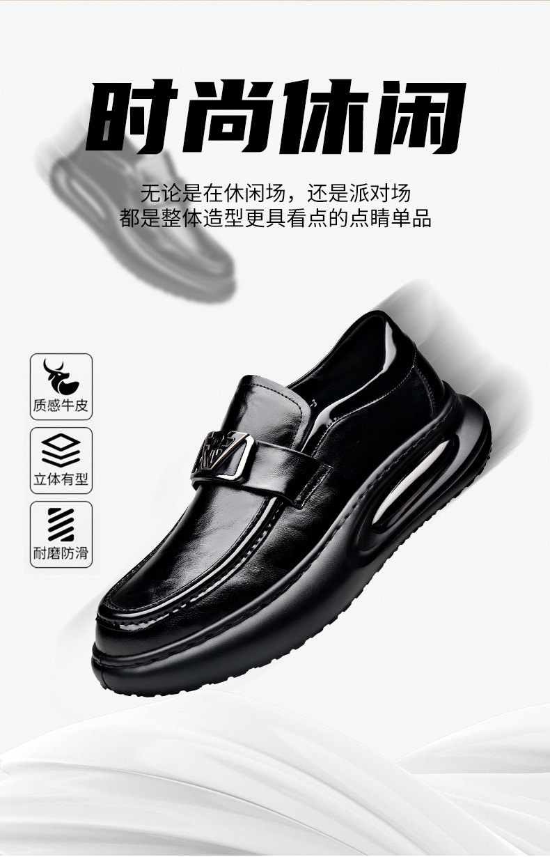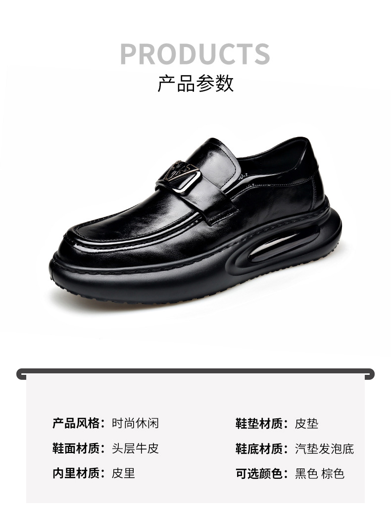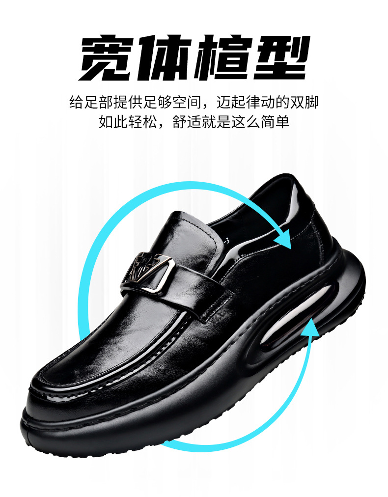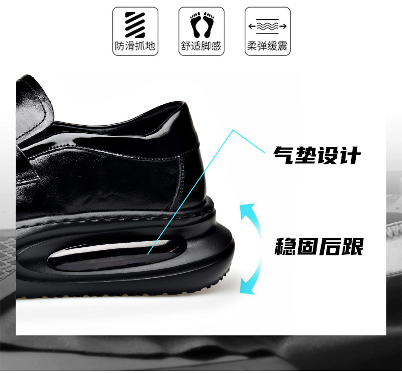 에어 쿠션 남성 신발 수제 정품 가죽 사업 캐주얼 가죽 신발 남성용 영국 두꺼운 밑창 증가 단층 신발 슬립 온 게으른 신발스토어 가기