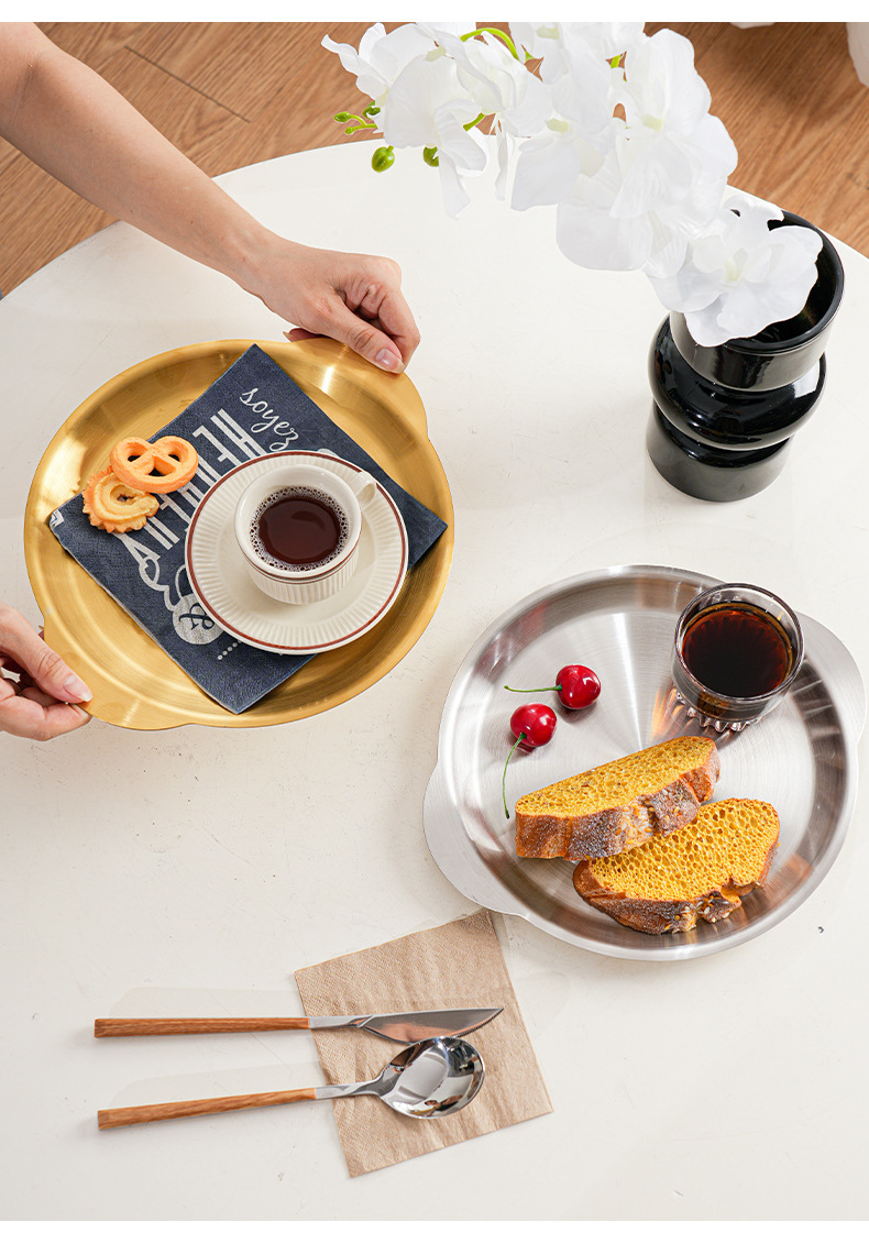 스테인레스 스틸 바이노럴 디스크 프라이드 치킨 스낵 플레이트 스테인레스 스틸 플레이트 웨스턴 푸드 플레이트 스낵 플레이트 가정용 하이 엔드 느낌