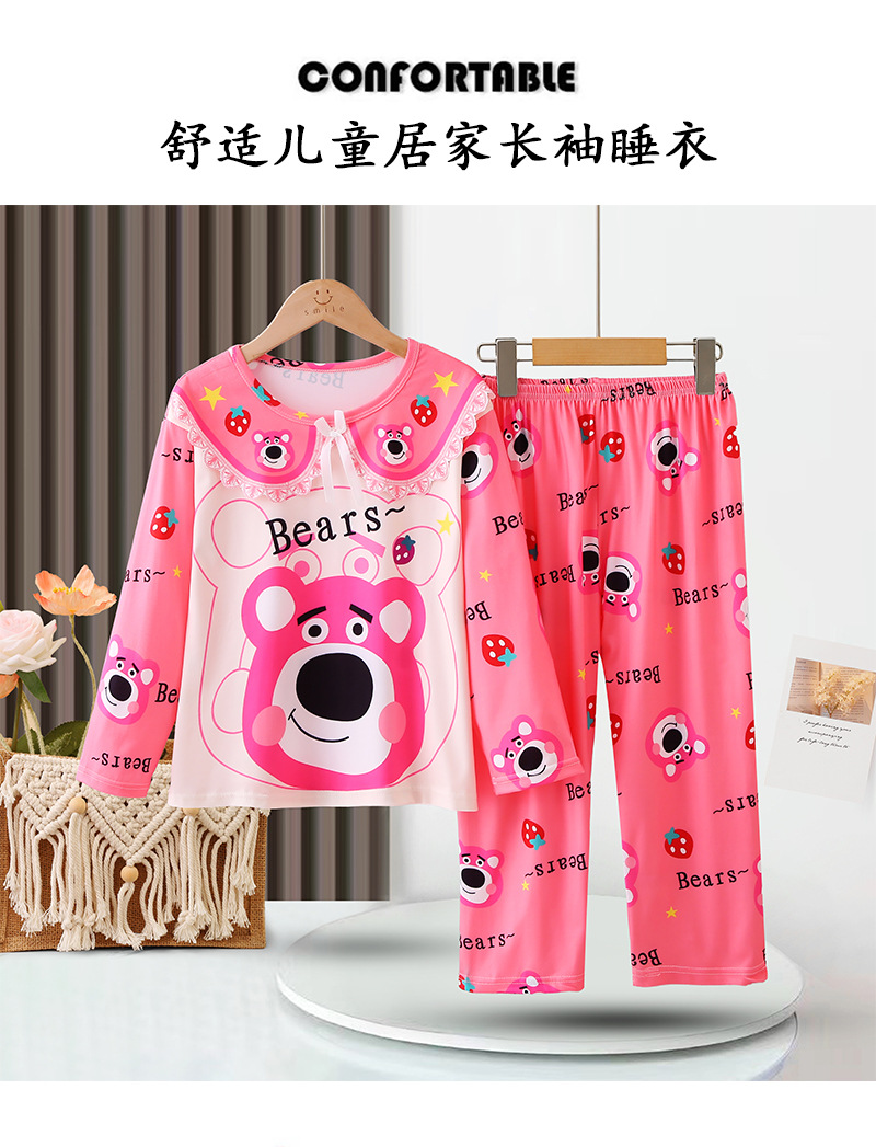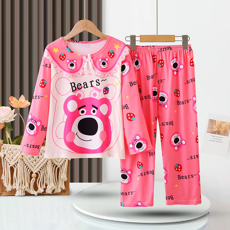 어린이 속옷 세트 소녀 봄과 가을 긴 소매 공주 스타일 소녀 잠옷 한국 만화 홈 의류 재고 도매스토어 가기