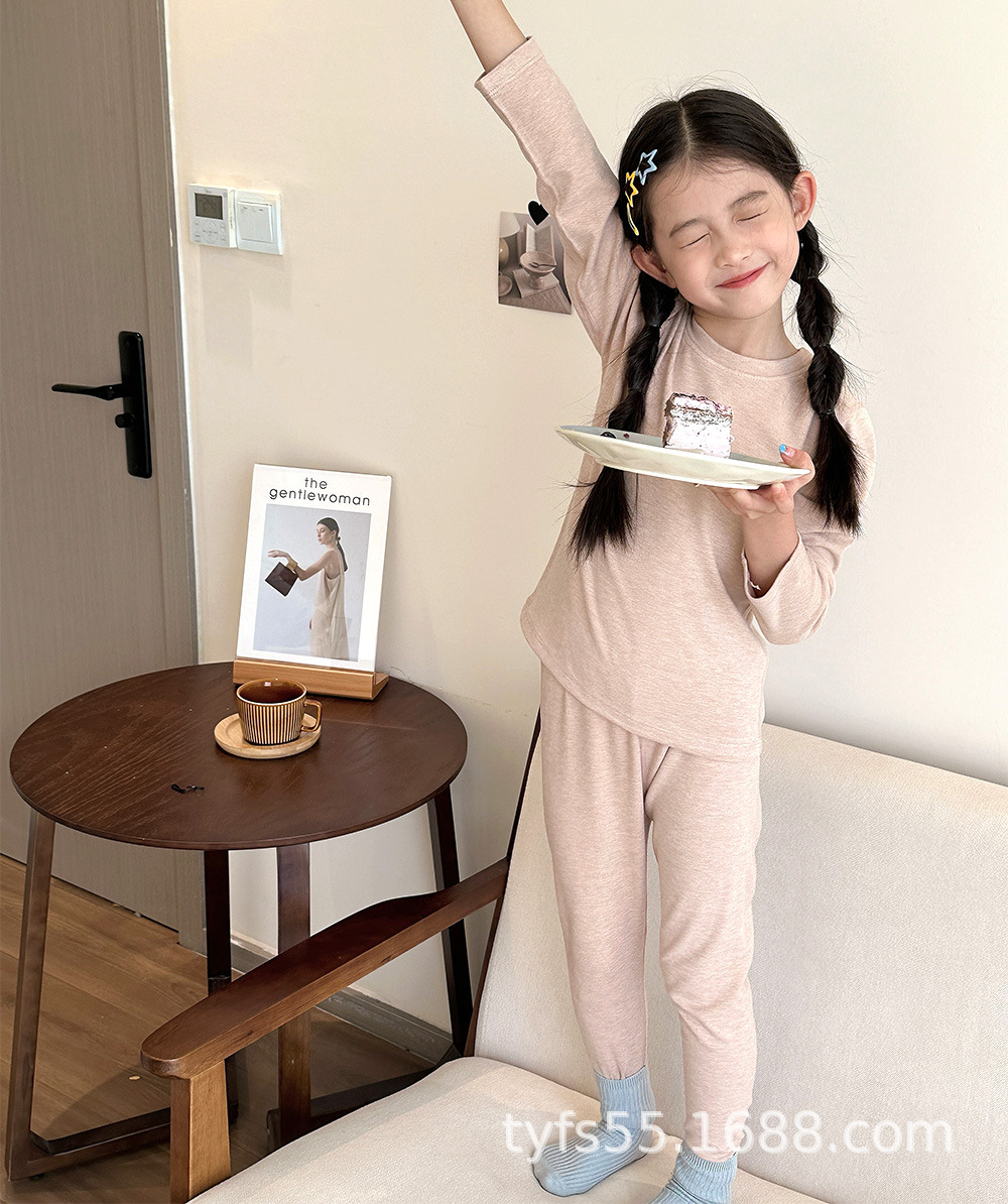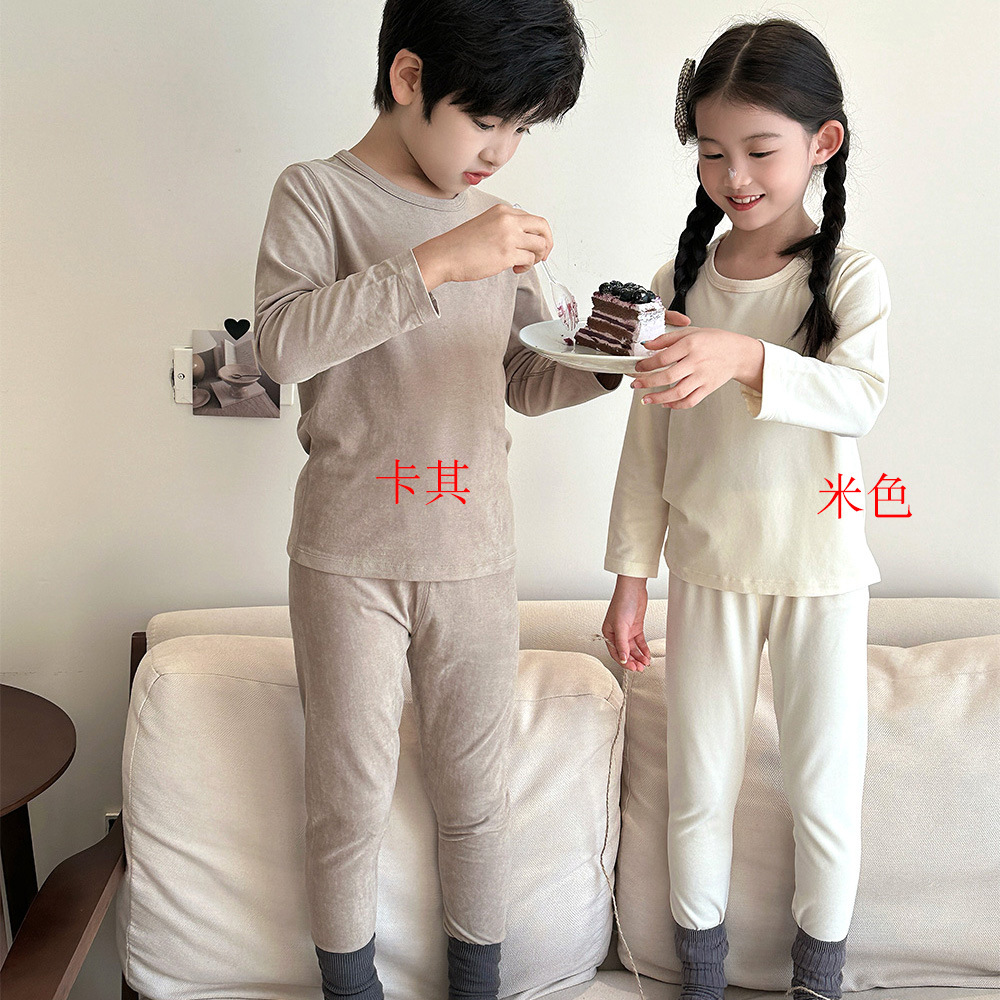가을과 겨울 어린이 모조 캐시미어 열 속옷 세트 학생 가을 옷 가을 바지 소년 소녀 한국 따뜻한 잠옷