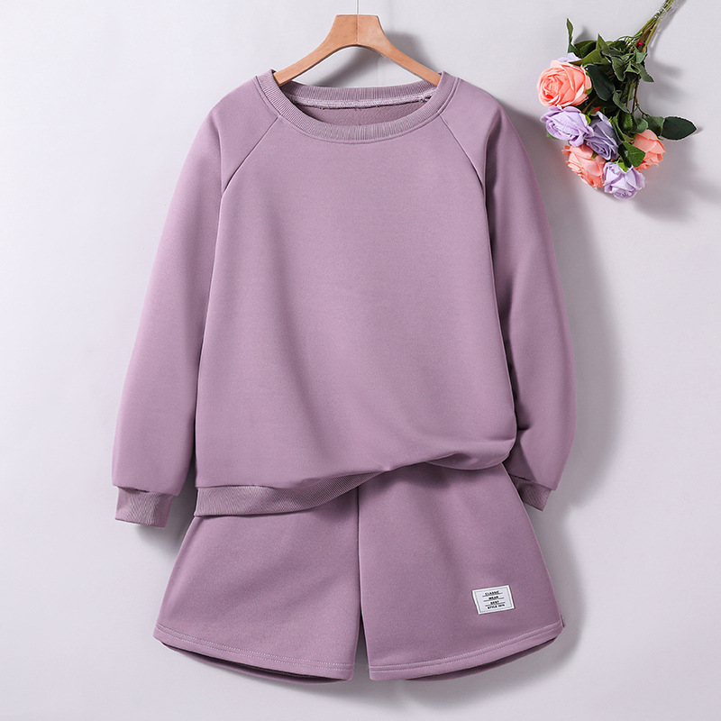 유럽과 미국 아동복 2025 봄 신작 크로스 보더 캐주얼 루즈 라운드 넥 긴팔 스웨트 셔츠 반바지 투피스 슈트
