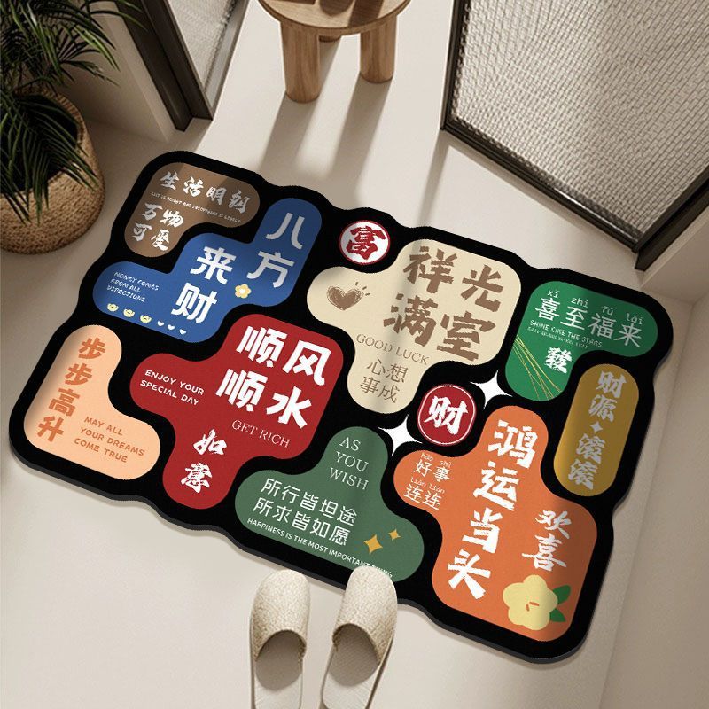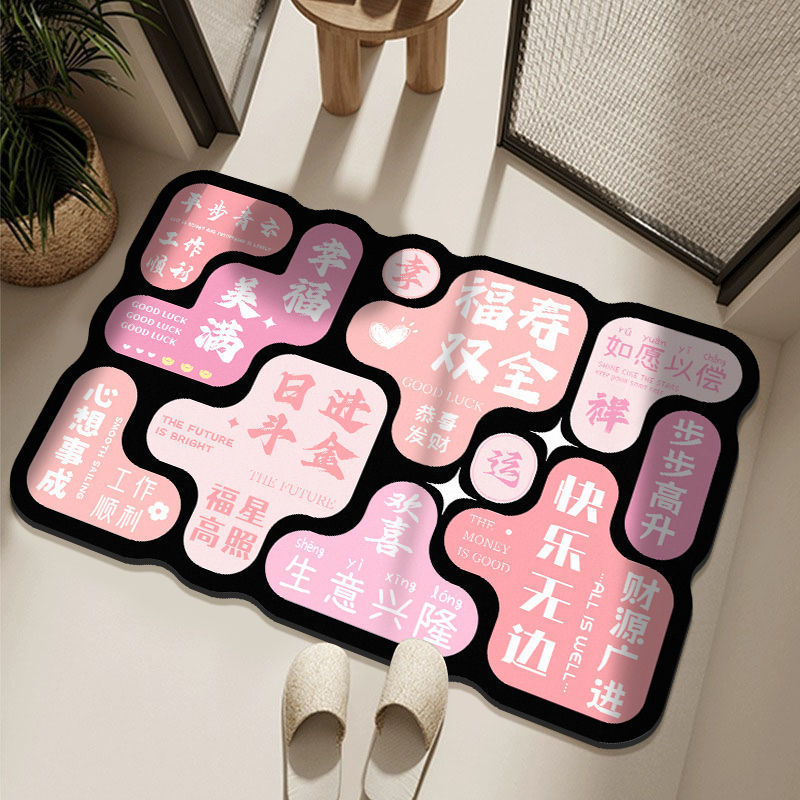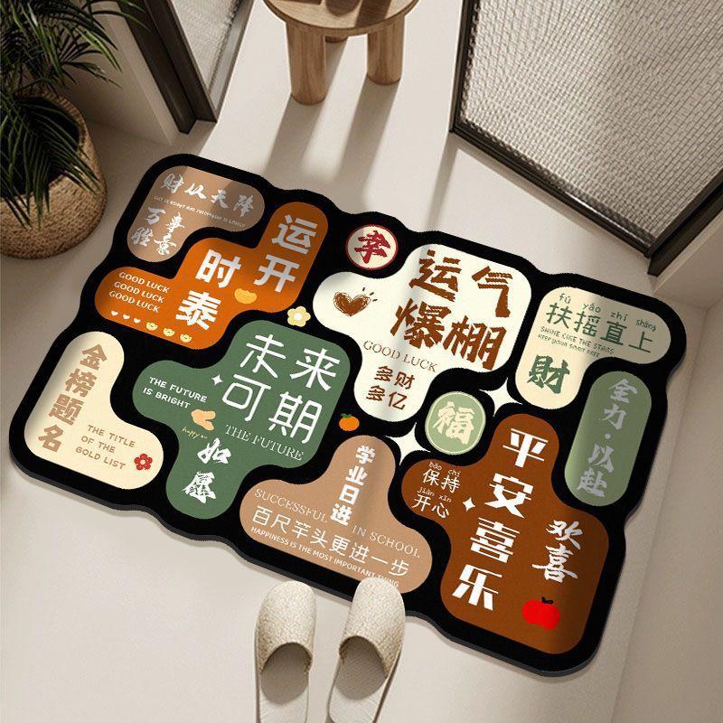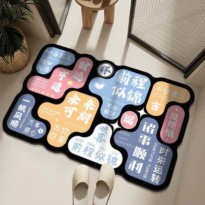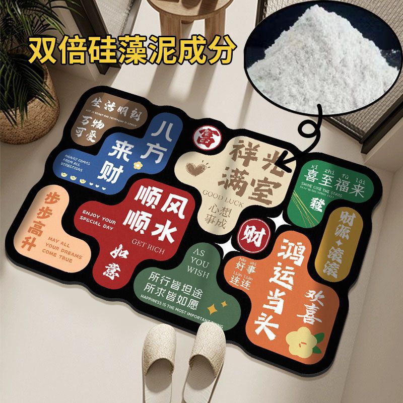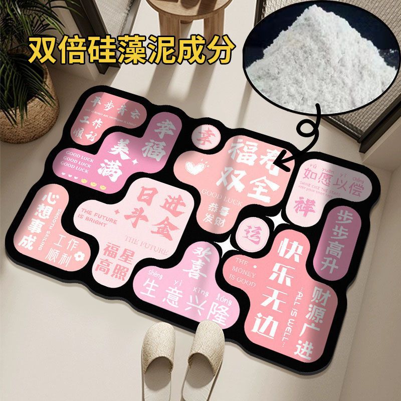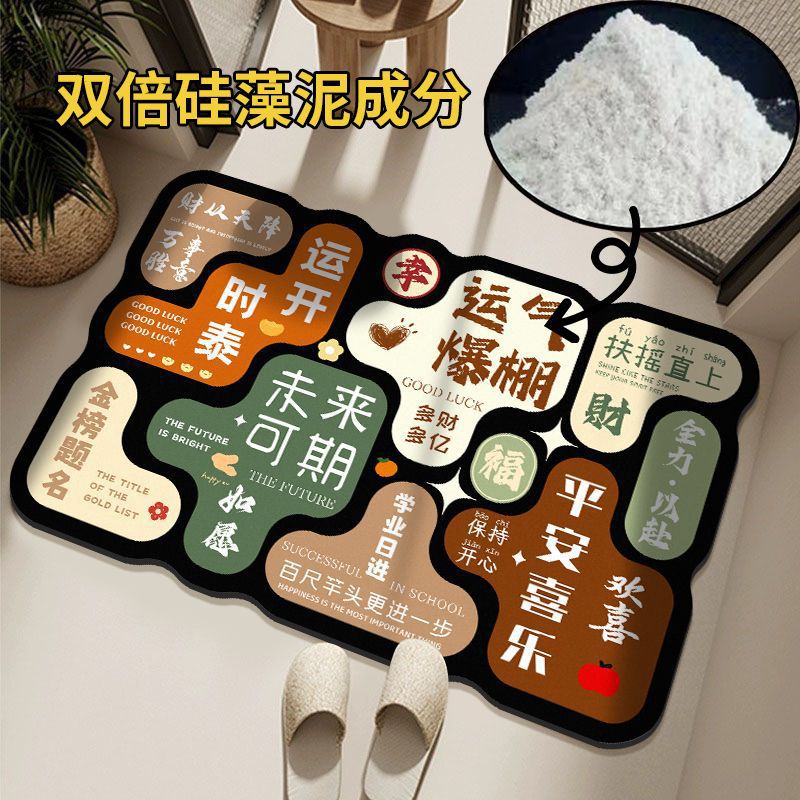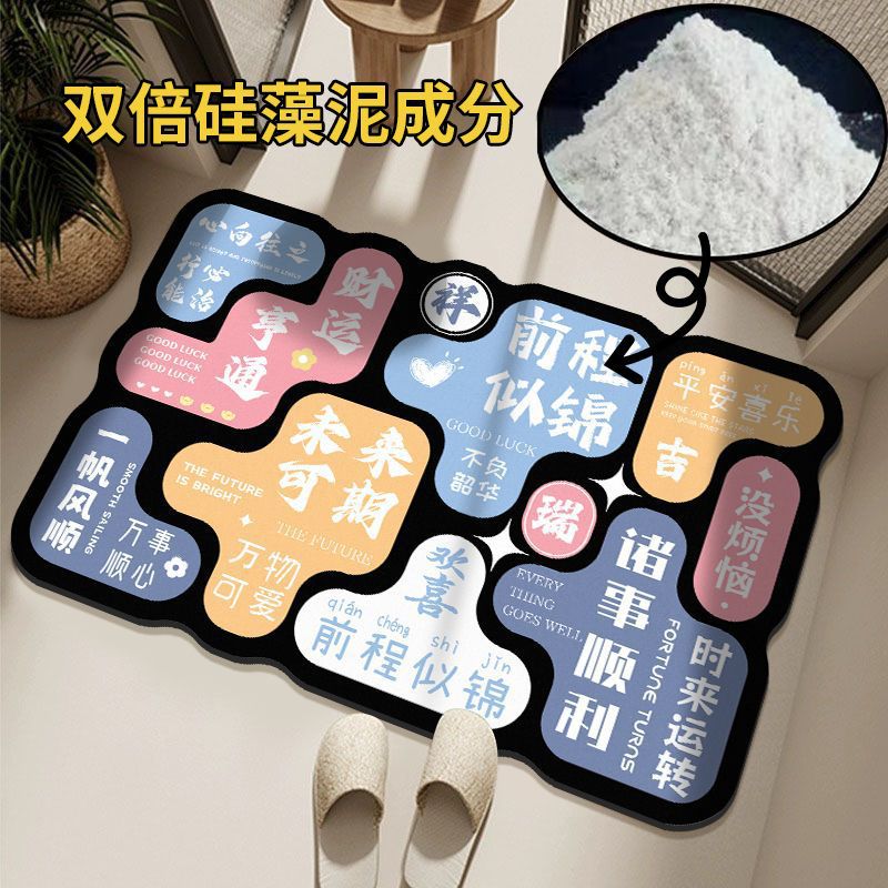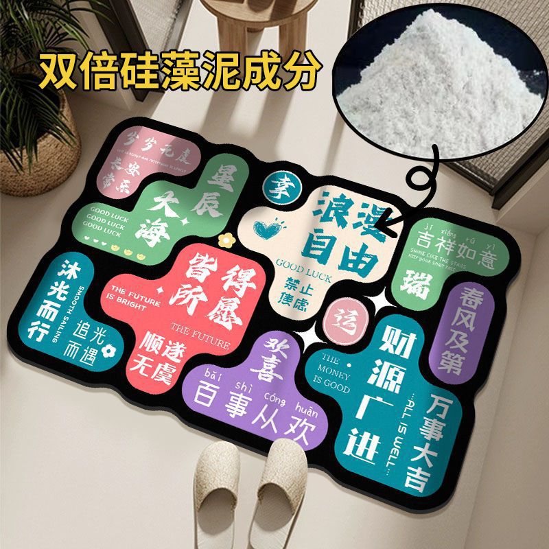 창조적 인 텍스트 욕실 Diatom 진흙 매트 스타일 욕실 화장실 문 빠른 건조 간편한 미끄럼 방지 매트