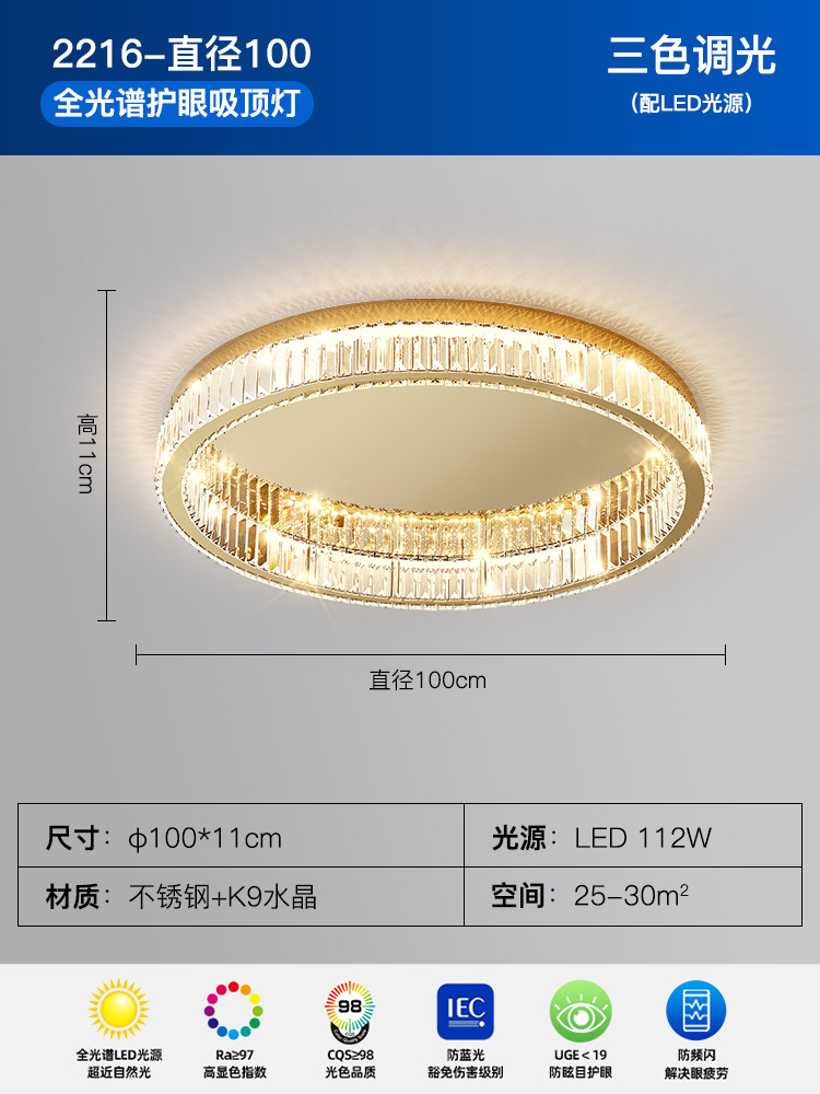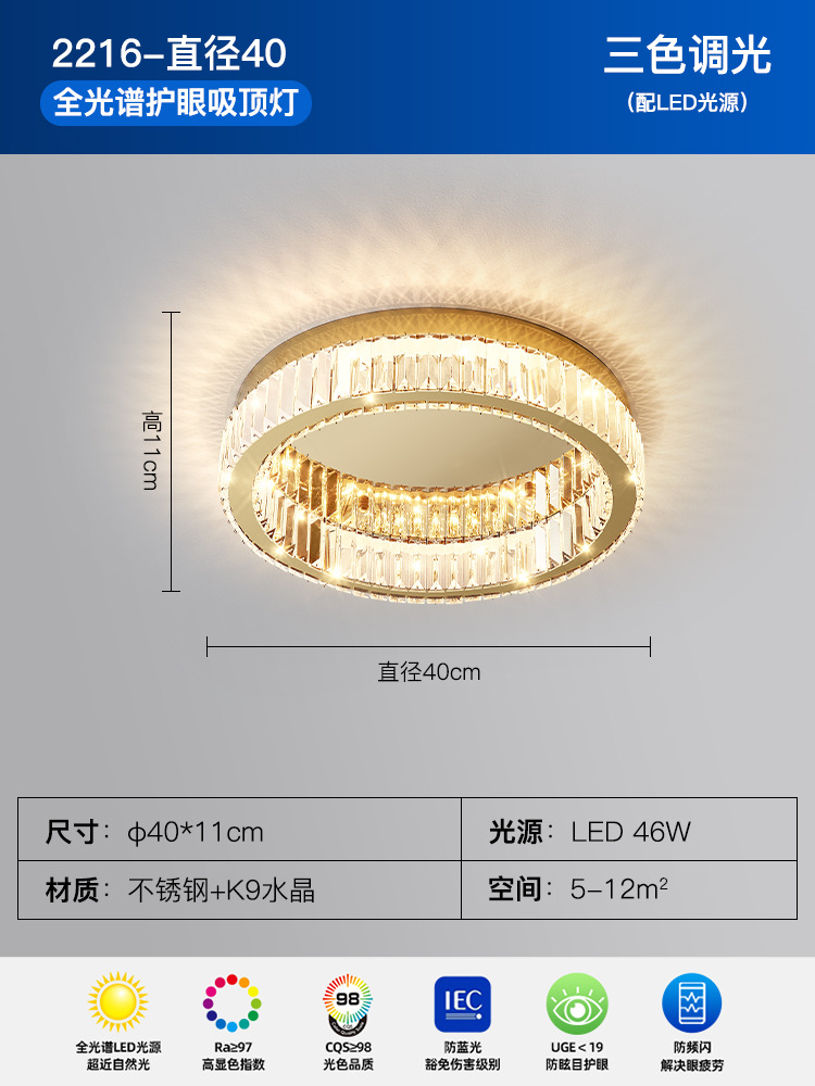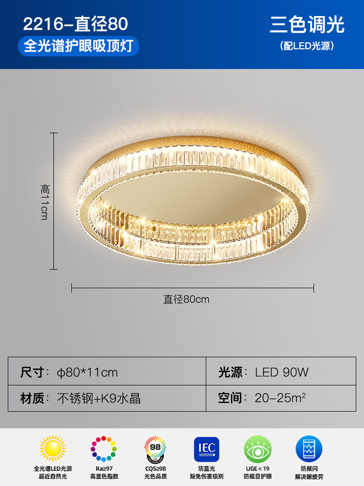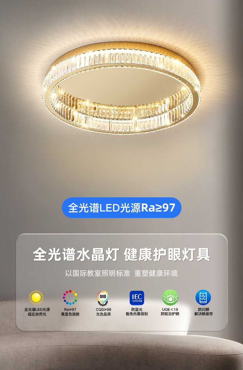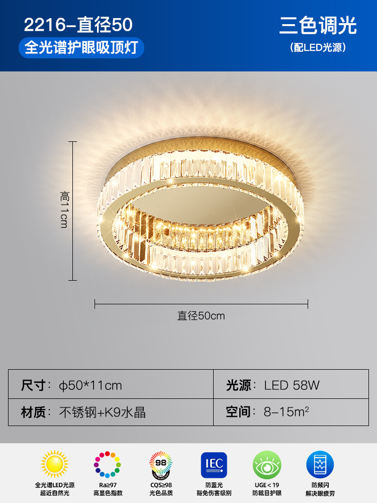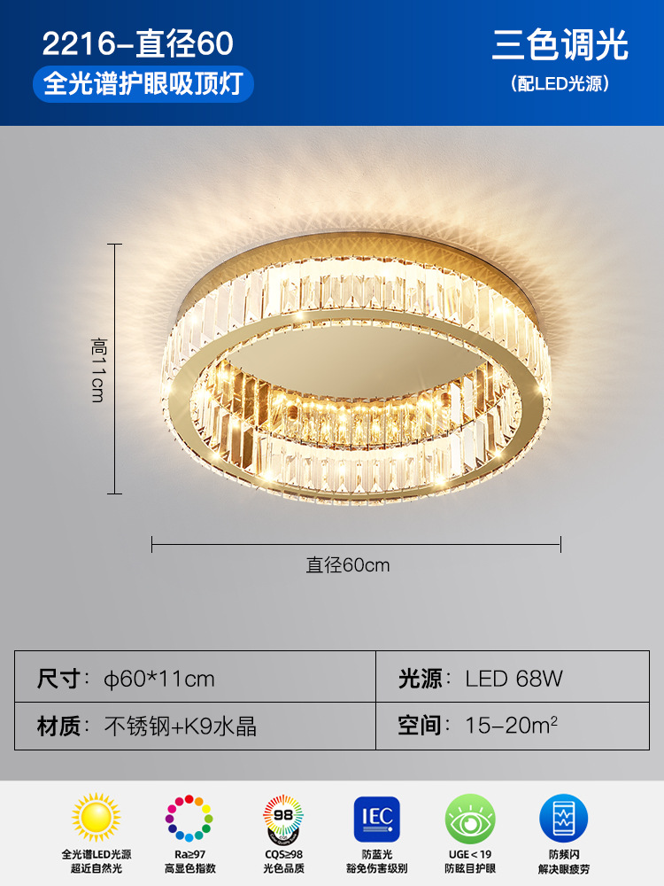 빛 고급 크리스탈 램프 거실 천장 램프 현대 간단한 대기 침실 메인 램프 2024 새로운 광동 중산 램프