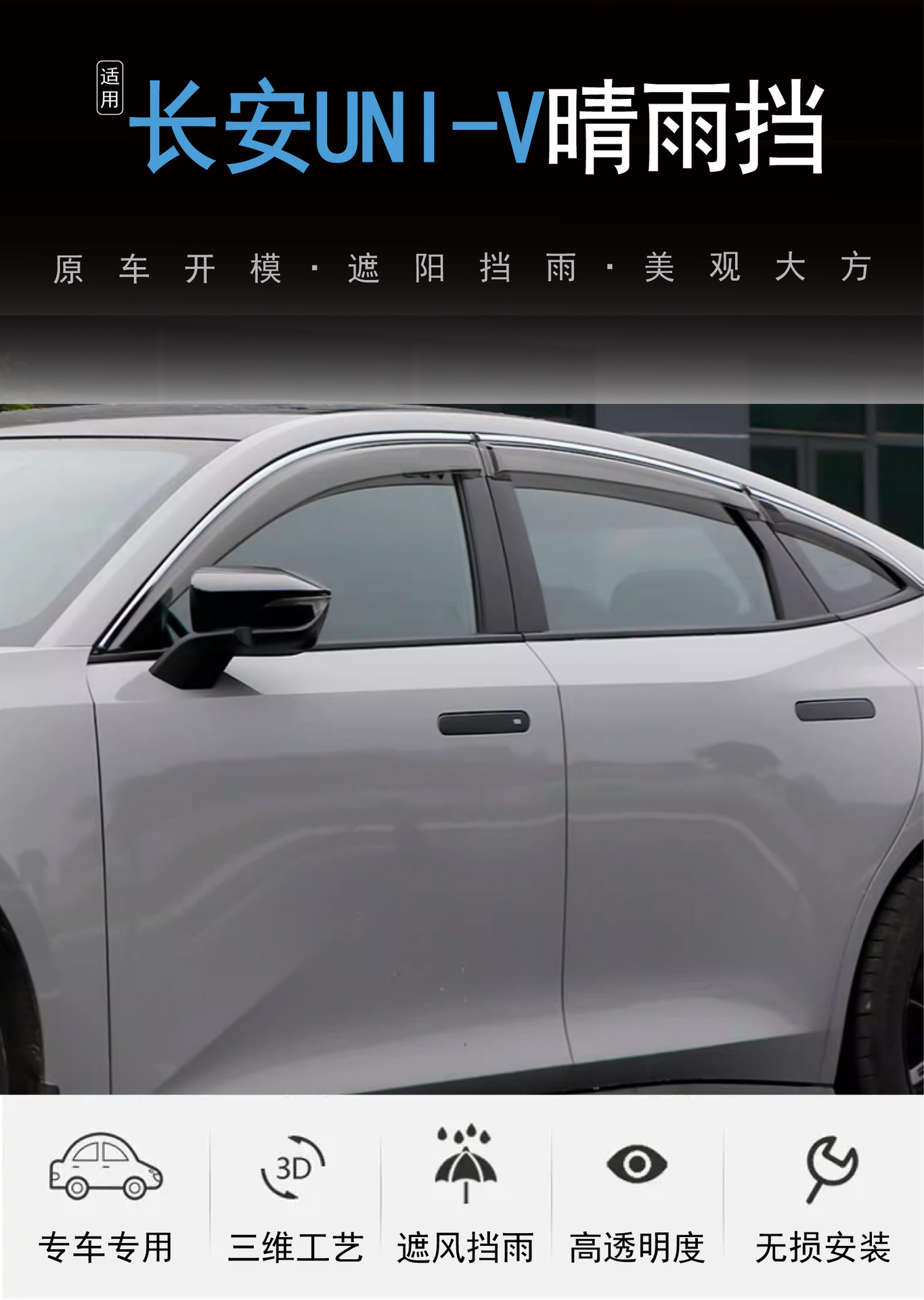 2022-2023 년 국경 간 적용 장안 UNI-V 차창 비 방지 6 아크릴 차 비 방패