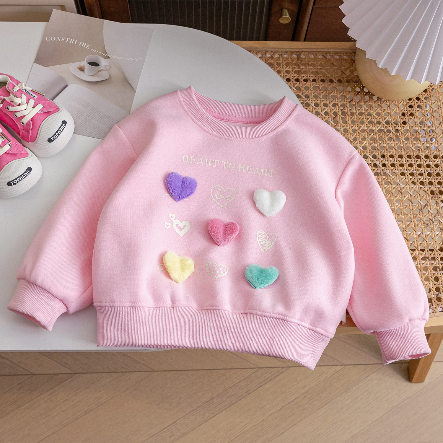 소녀의 봄과 가을 새로운 사랑 유행 후드 아기 소녀 세련된 귀여운 풀오버 캐주얼 탑 올 매치 아동복스토어 가기