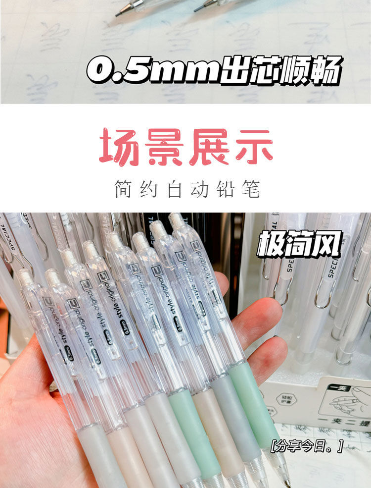 Ins 간단한 기계 연필 높은 색상 가치 내구성 프레스 활동 연필 HB 초등학생 시험을위한 지속적인 코어스토어 가기