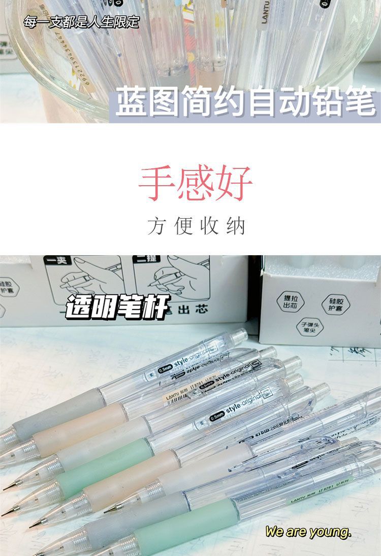 Ins 간단한 기계 연필 높은 색상 가치 내구성 프레스 활동 연필 HB 초등학생 시험을위한 지속적인 코어