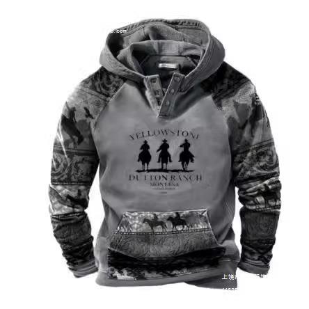 국경을 넘는 새로운 캐주얼 패션 스웨터 후드 레트로 3D 인쇄 남성 스웨터 유럽과 미국의 거리 의류