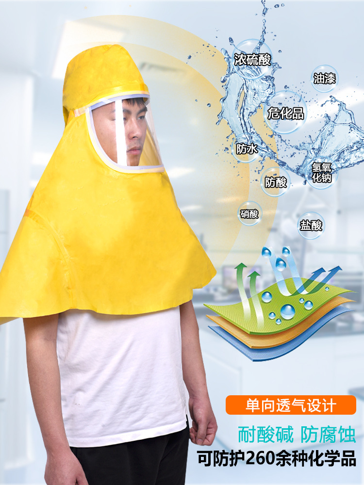 산 및 알칼리 저항성 화학 내산성 헤드 기어 비방성 화학 마스크 선 스크린 망토 먼지 마스크 산 및 알칼리 저항성 후드 비옷스토어 가기