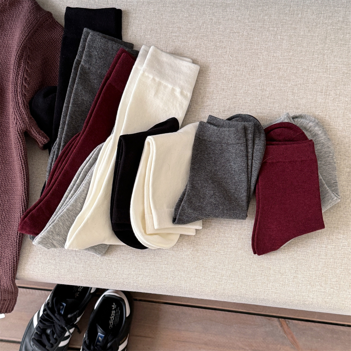 IOULOR 에어로빅 코튼 단색 뼈없는 종아리 양말 가을과 겨울 빈티지, 바람 스타킹 슬림 jk 양말 도매스토어 가기