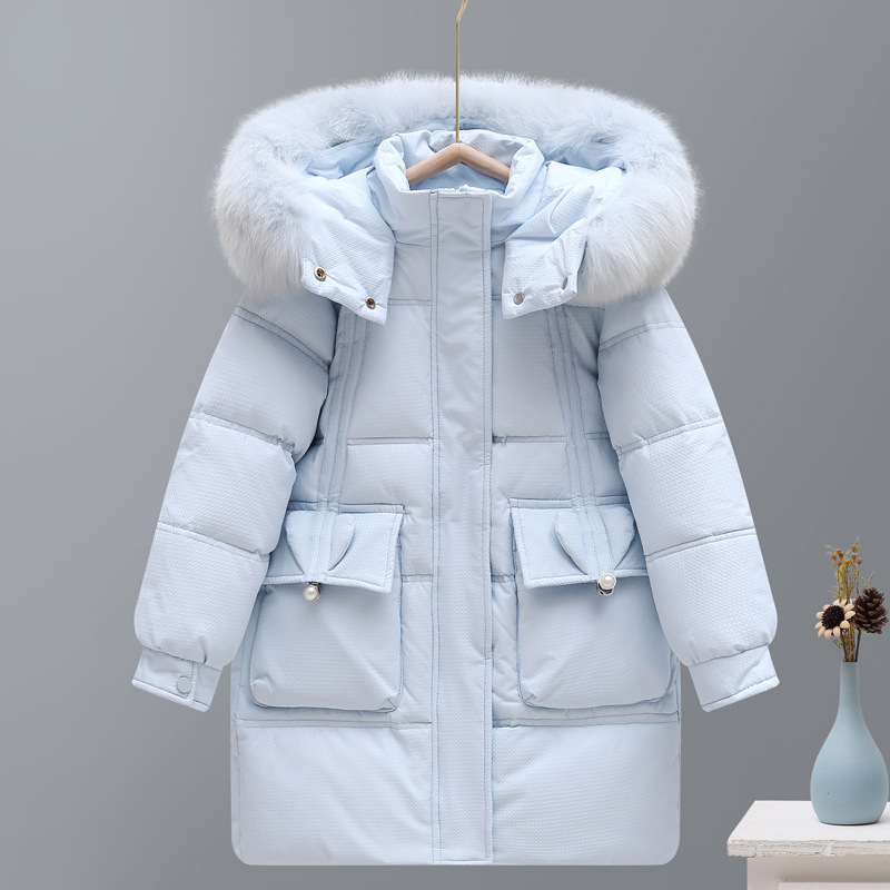 소녀를위한 어린이 흰색 오리 다운 재킷 중간 길이의 어린이 중 및 노인 어린이 아기 겨울 두꺼운 서양식 재킷
