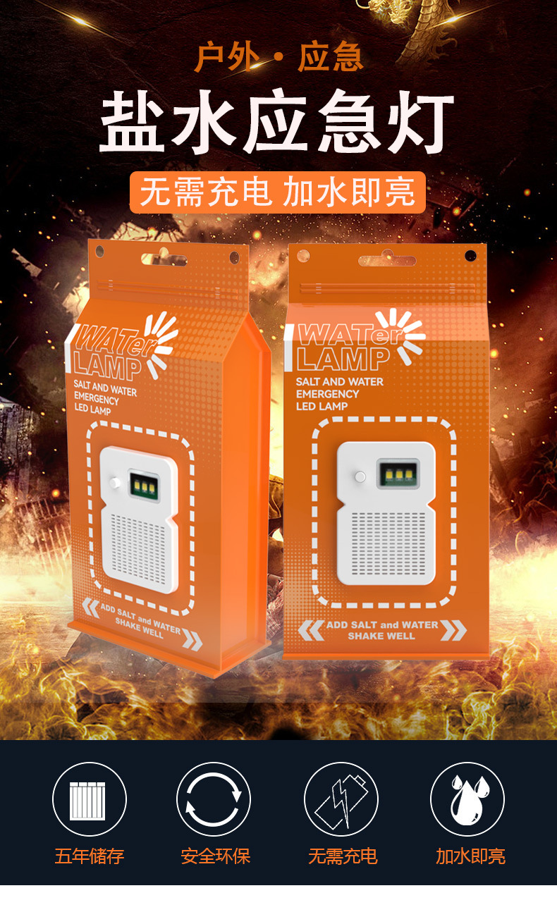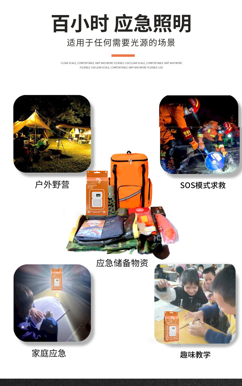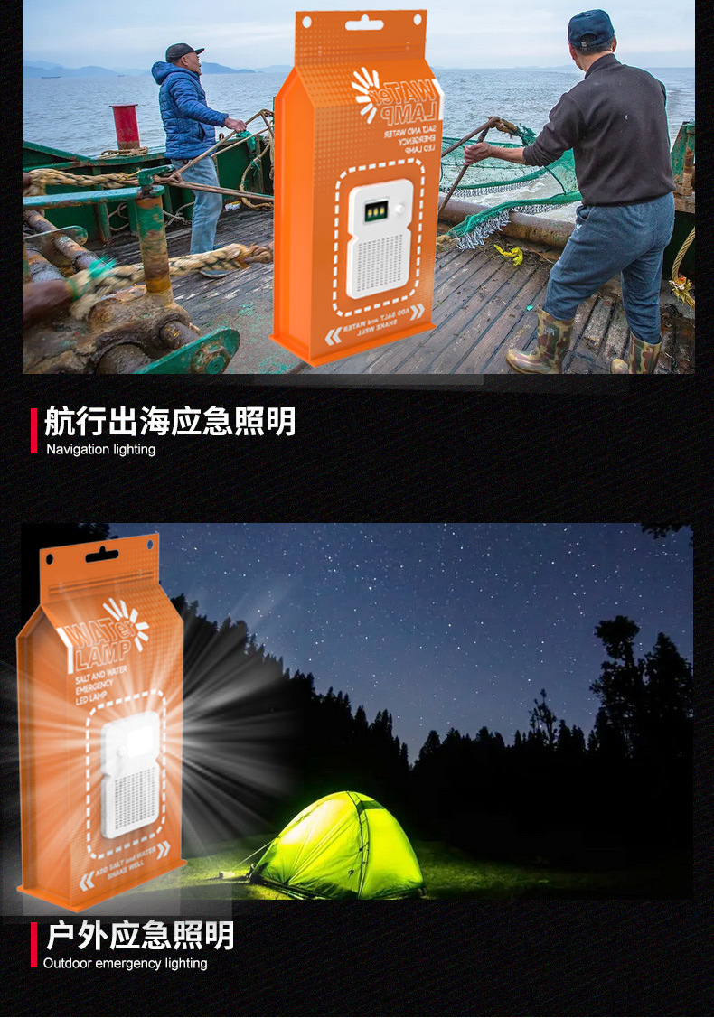 국경 간 뜨거운 판매 공장 직접 판매 비상 염수 램프 야외 다기능 비상 조명 배터리가없는 LED 염수 램프스토어 가기