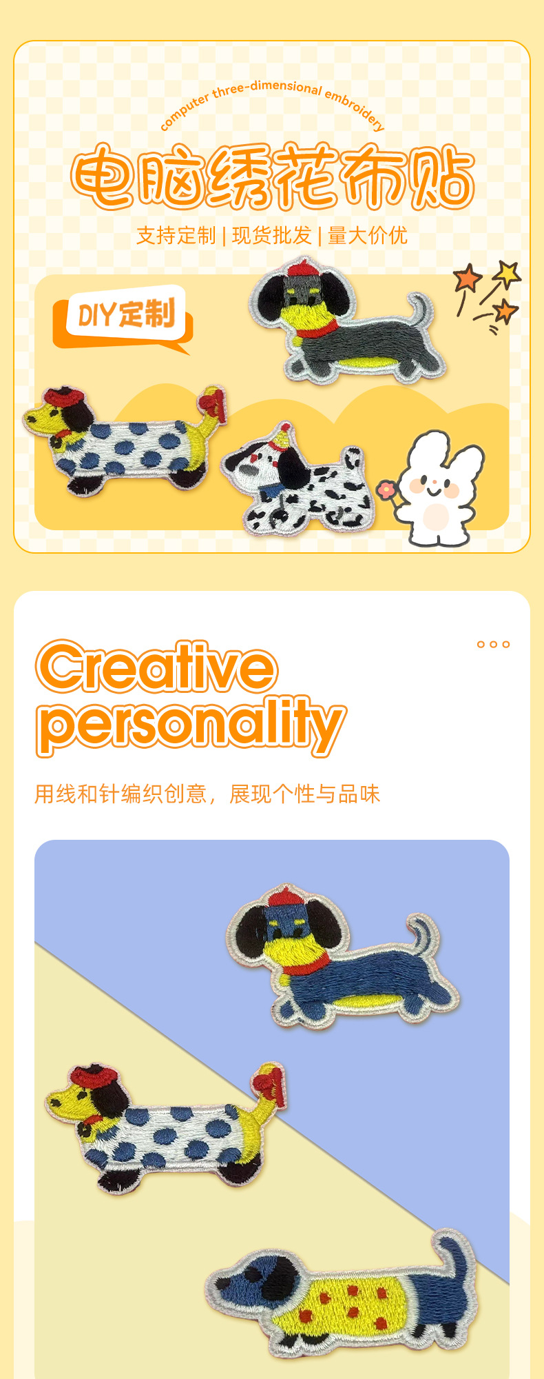 새로운 어린이 만화 강아지 핫멜트 접착 천 스티커 신발 및 모자 의류 액세서리 컴퓨터 자수 귀여운 동물 자체 접착스토어 가기