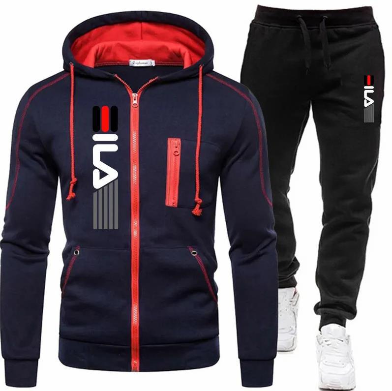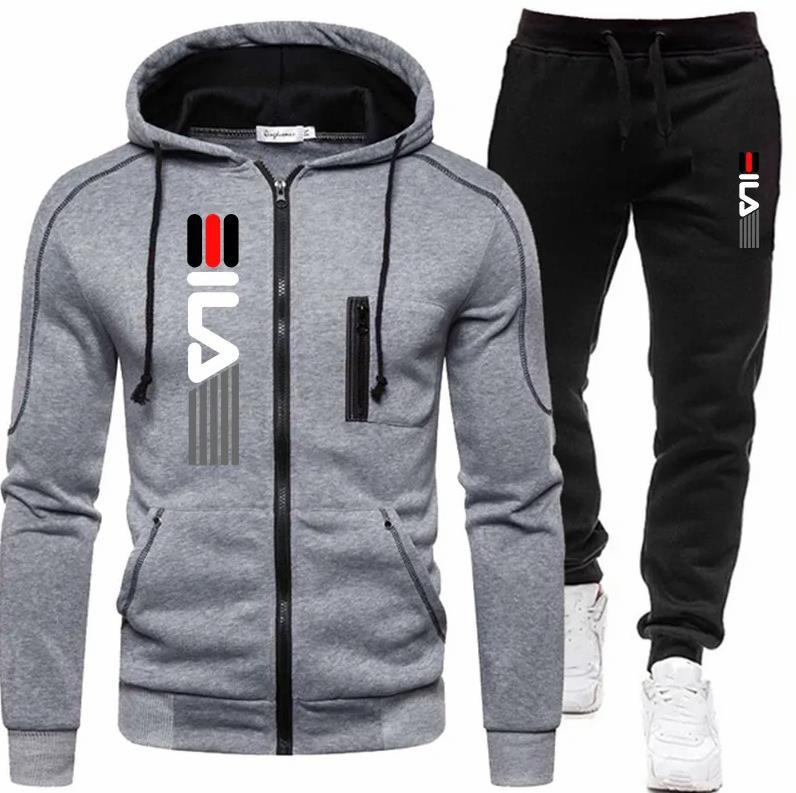 가을, 겨울 남성 스포츠 및 레저 정장 새로운 지퍼 카디건 후드 정장 멀티 포켓 슬림 스웨트 정장