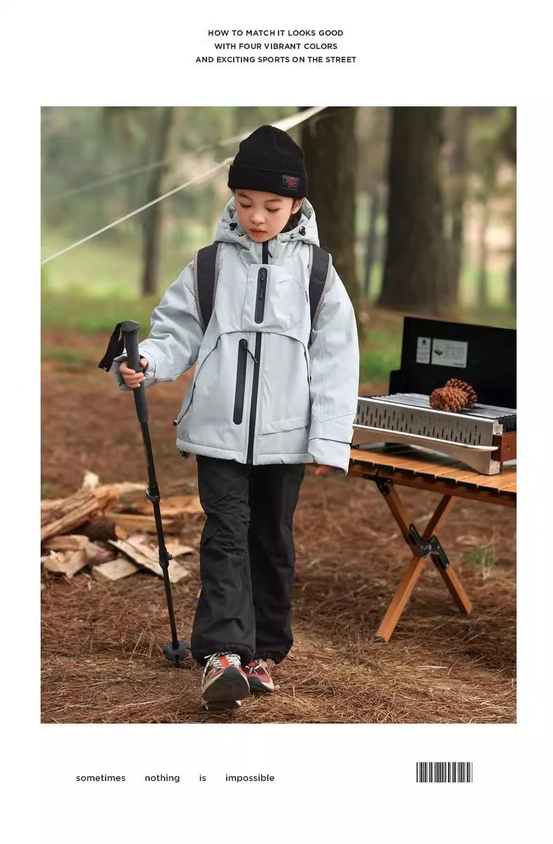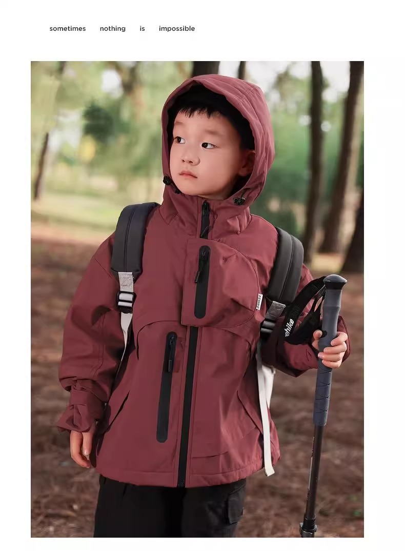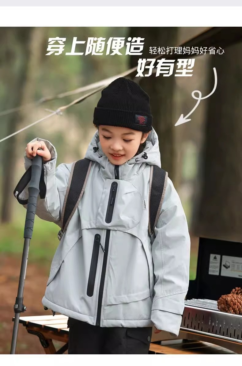 남학생과 여학생의 봄과 가을 후드 선 스크린 재킷 대형 어린이 방풍 야외 등산 세트 어린이 퀼트 폭행 세트 유행스토어 가기