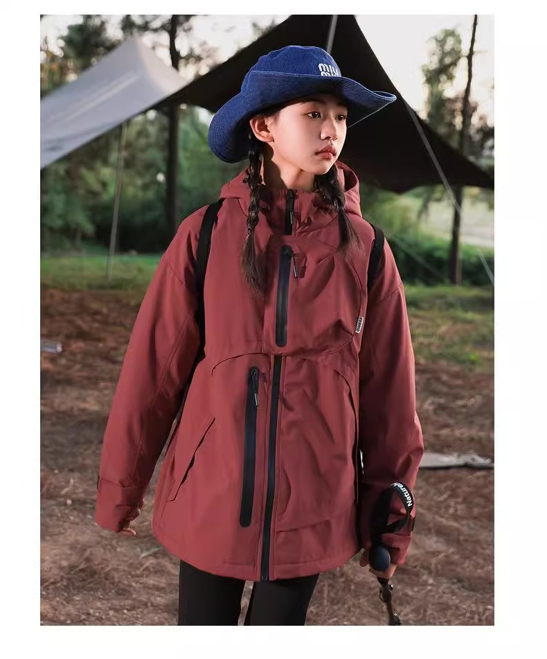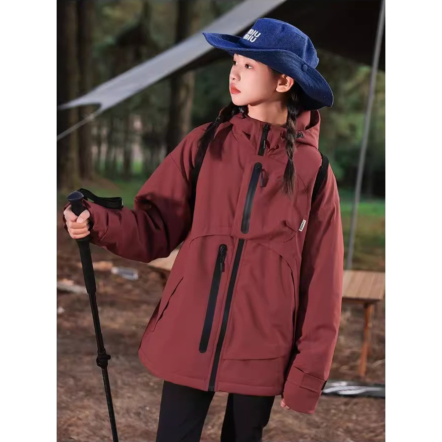 남학생과 여학생의 봄과 가을 후드 선 스크린 재킷 대형 어린이 방풍 야외 등산 세트 어린이 퀼트 폭행 세트 유행