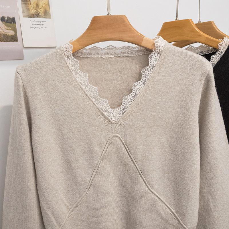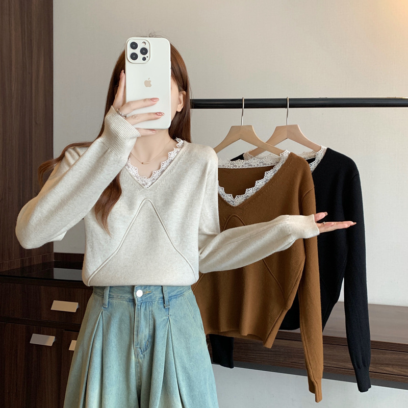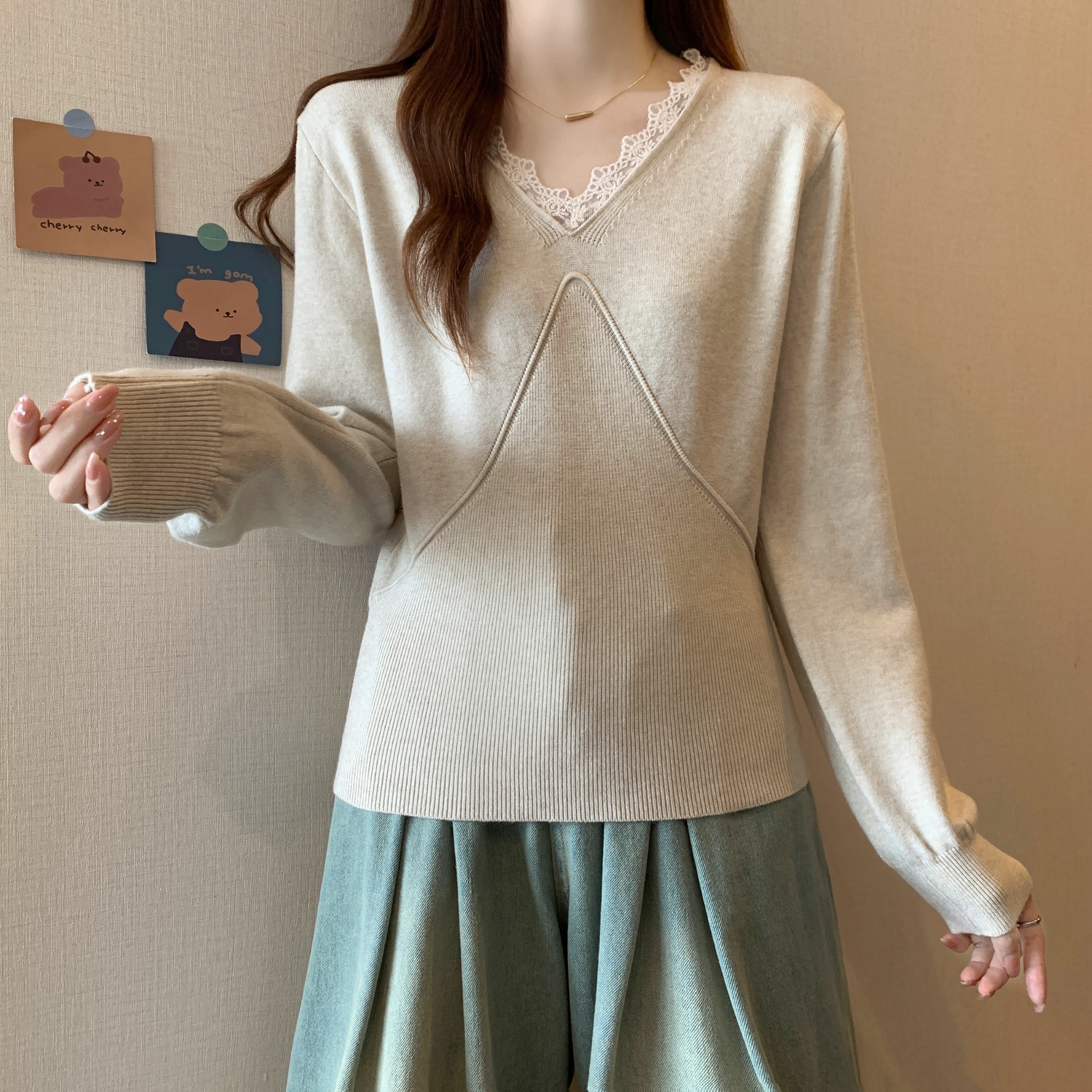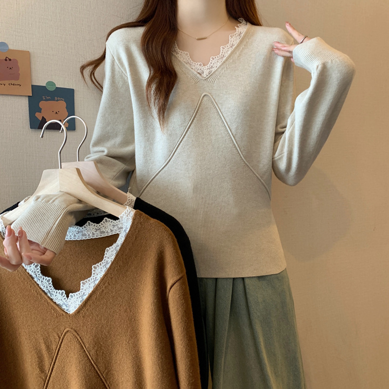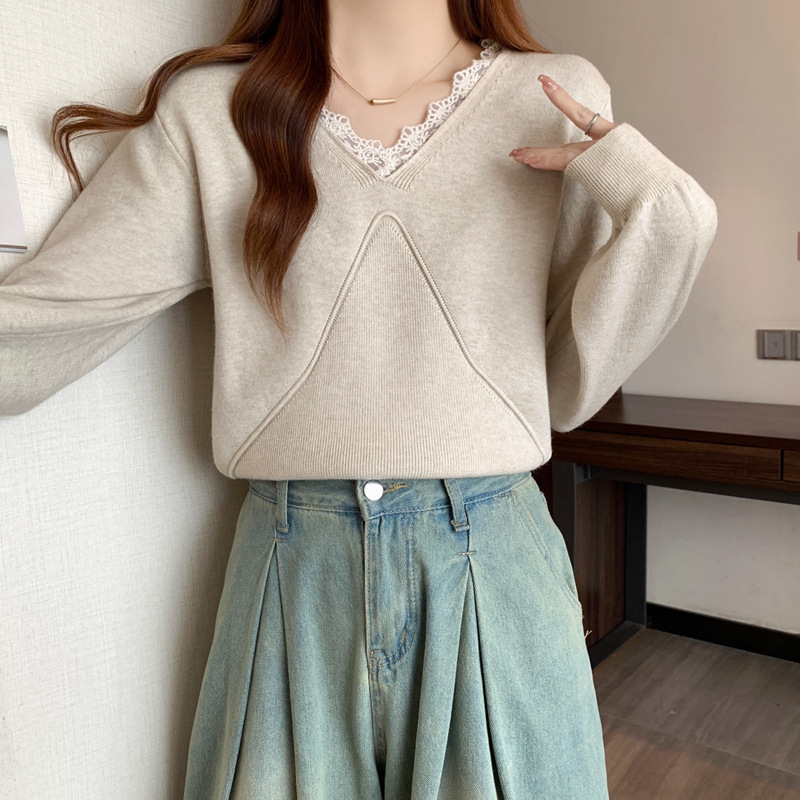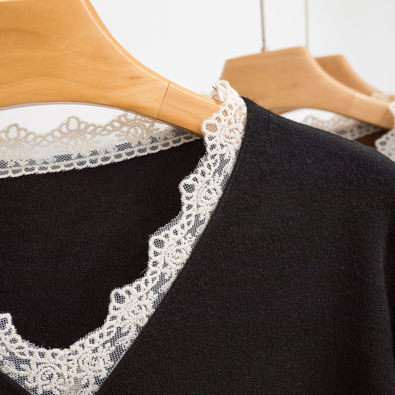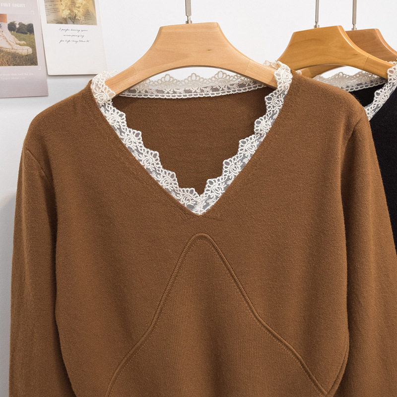 리얼 샷 ~ 플러스 사이즈 여성 통통녀 레이스 v-neck 가을과 겨울 2023 느슨한 슬림 새로운 스웨터 풀오버 스웨터