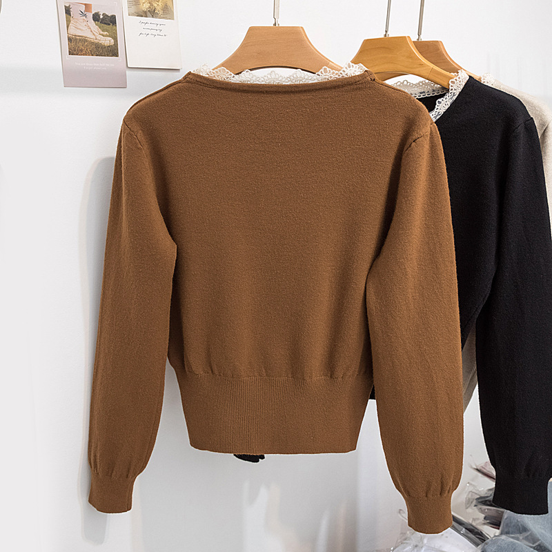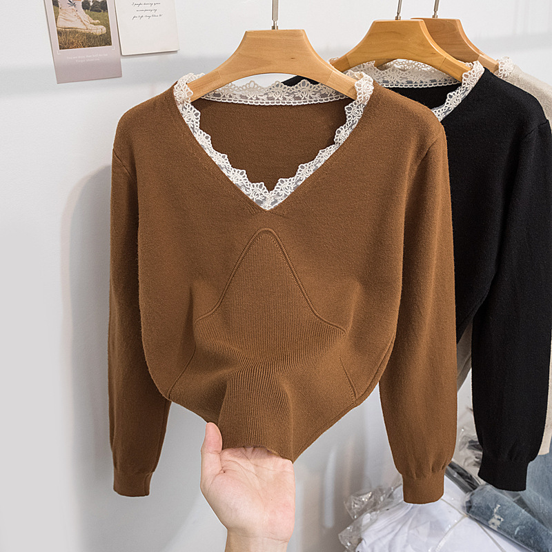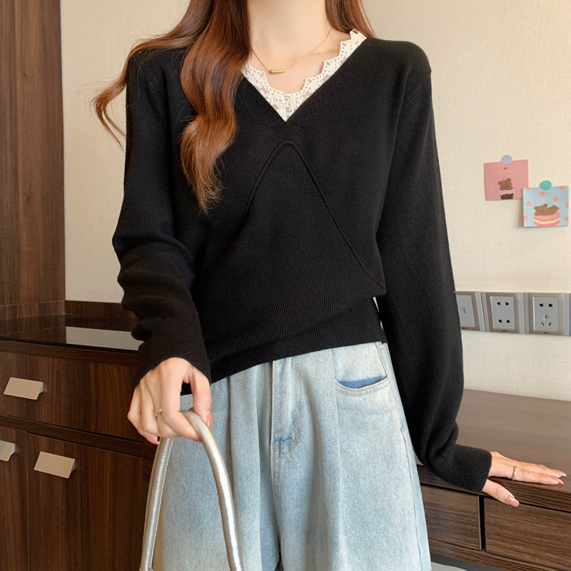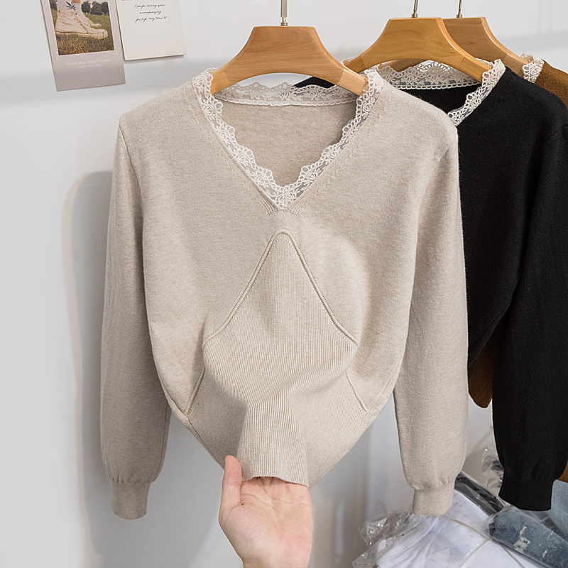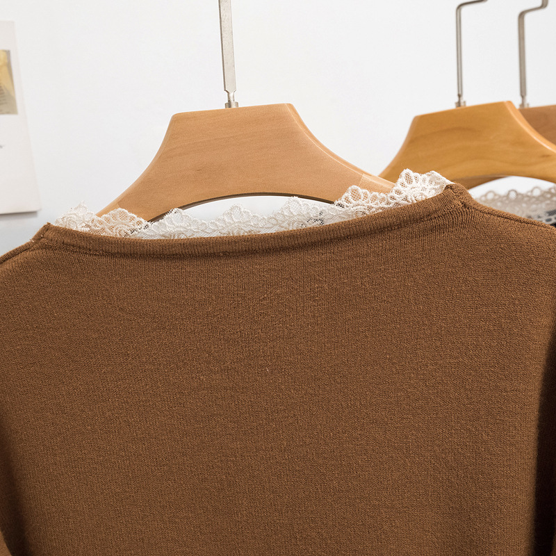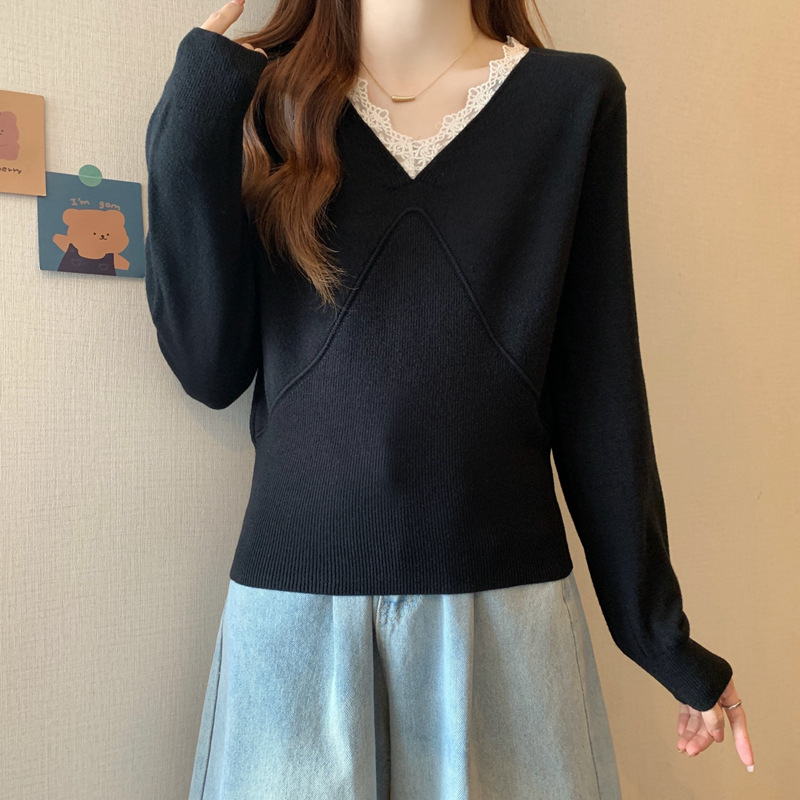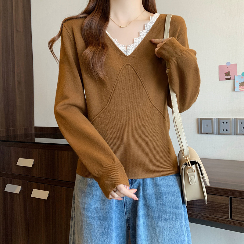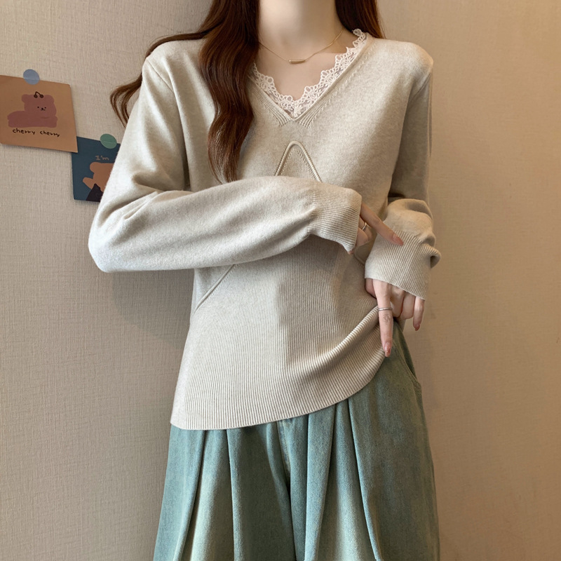 리얼 샷 ~ 플러스 사이즈 여성 통통녀 레이스 v-neck 가을과 겨울 2023 느슨한 슬림 새로운 스웨터 풀오버 스웨터