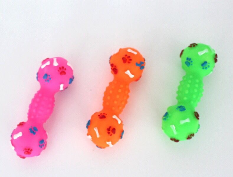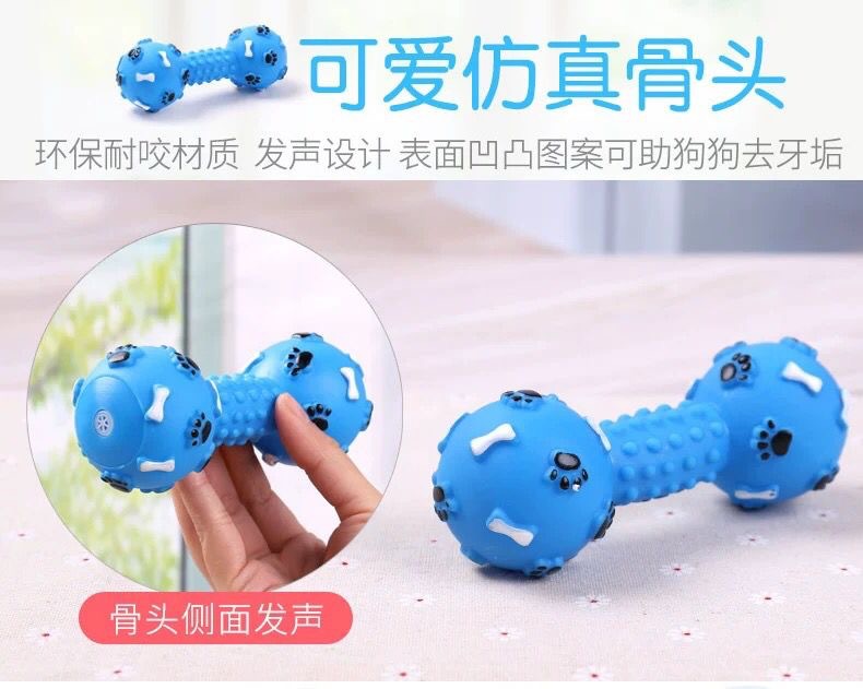 공장 도매 애완견 장난감 물린 방지 비닐 사운드 덤벨 치아 청소 교육 강아지 장난감 용품스토어 가기