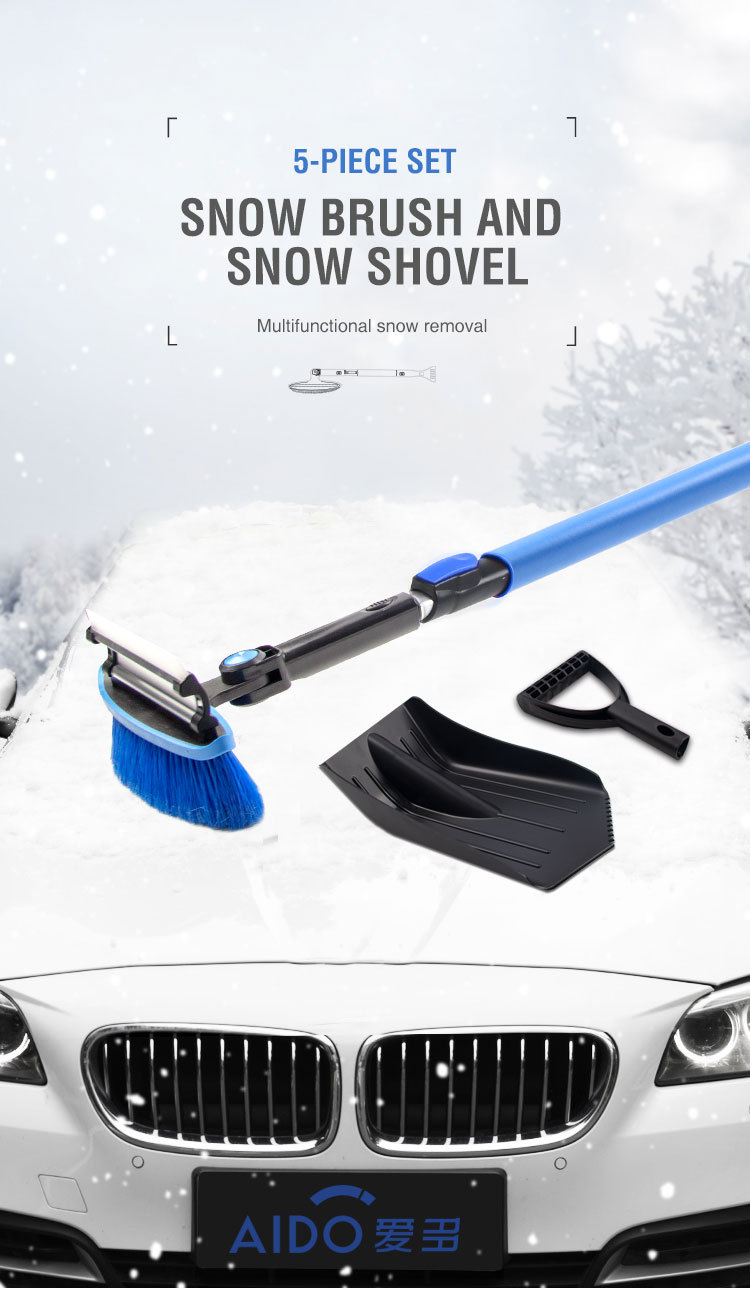 자동차 다기능 눈 제거 아티팩트 스노우 브러시 세트 와이퍼 삽 얼음 눈 삽 개폐식 휴대용 막대 제설 브러시 세트