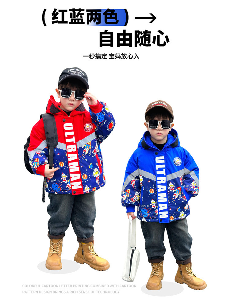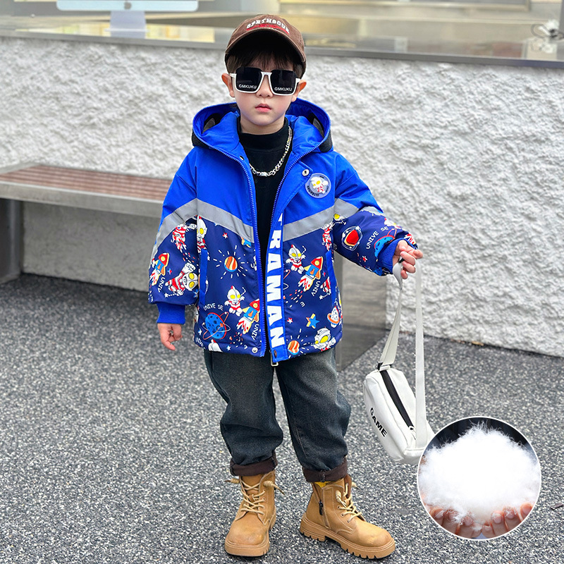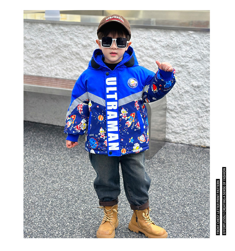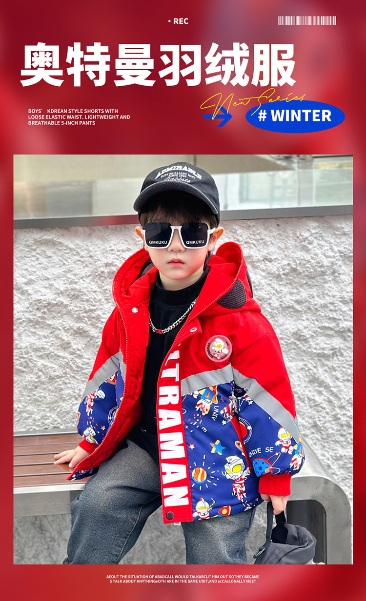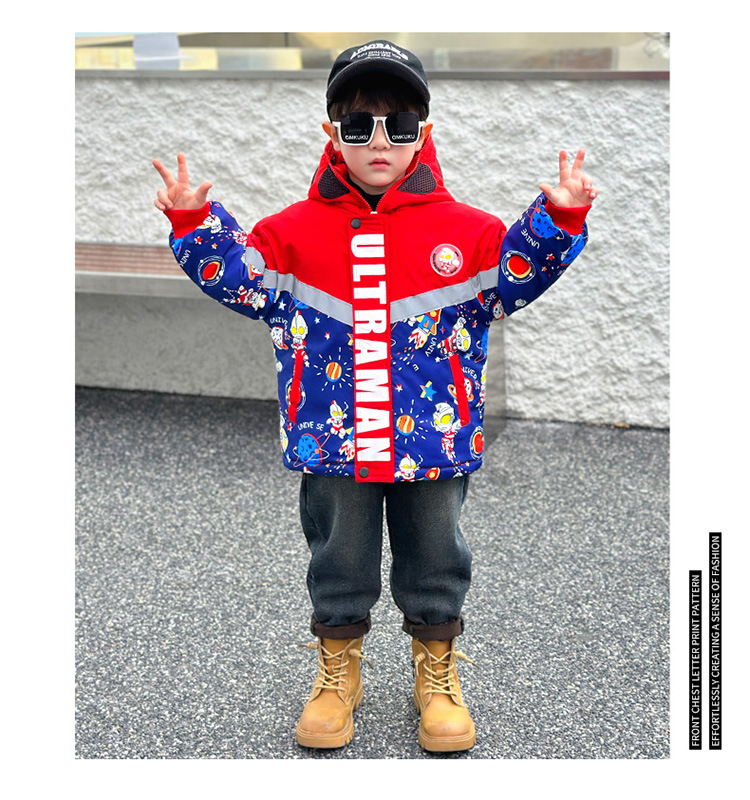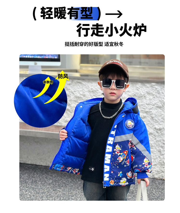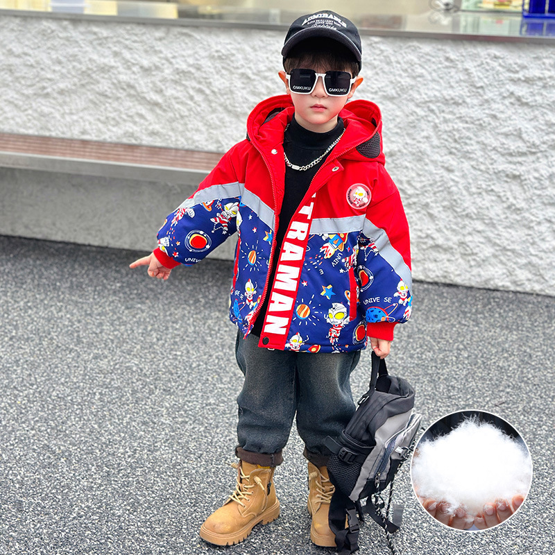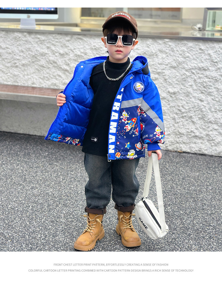 울트라 맨 다운 재킷 소년 겨울 2024 새로운 라이트 업 잘 생긴 어린이 겨울 화이트 덕 다운 코튼 패딩 재킷 트렌디스토어 가기