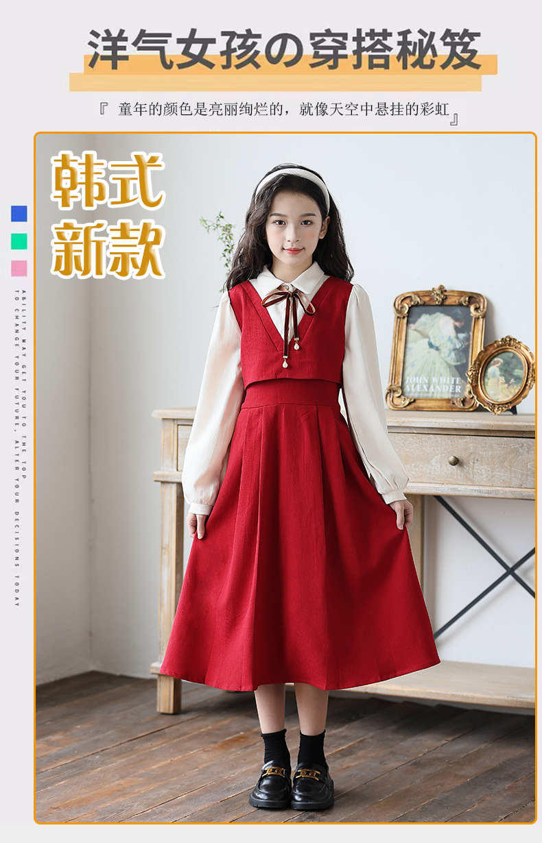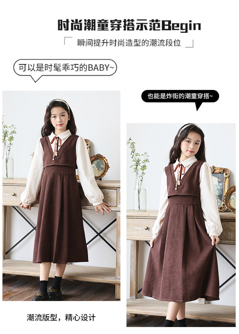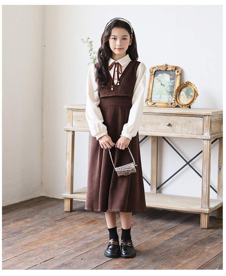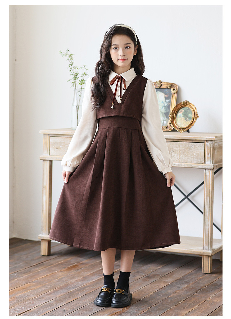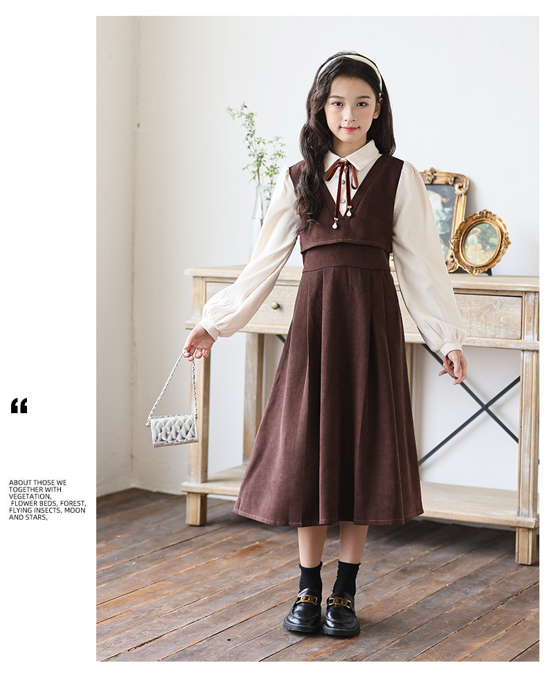 소녀 가을과 겨울 2024 새로운 소녀 달콤한 귀여운 공주 원피스 대학 스타일 셔츠 칼라 가짜 투피스 원피스스토어 가기