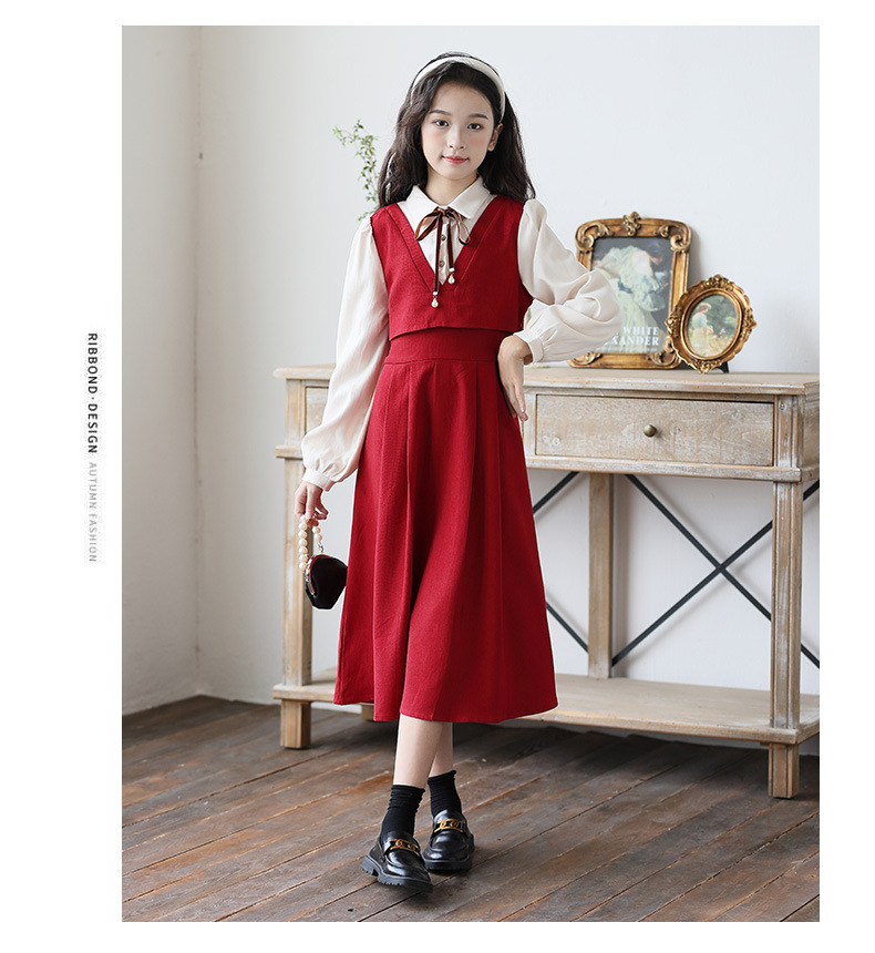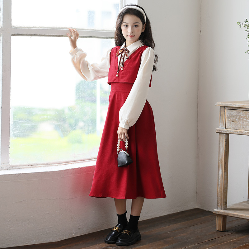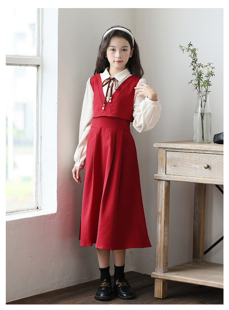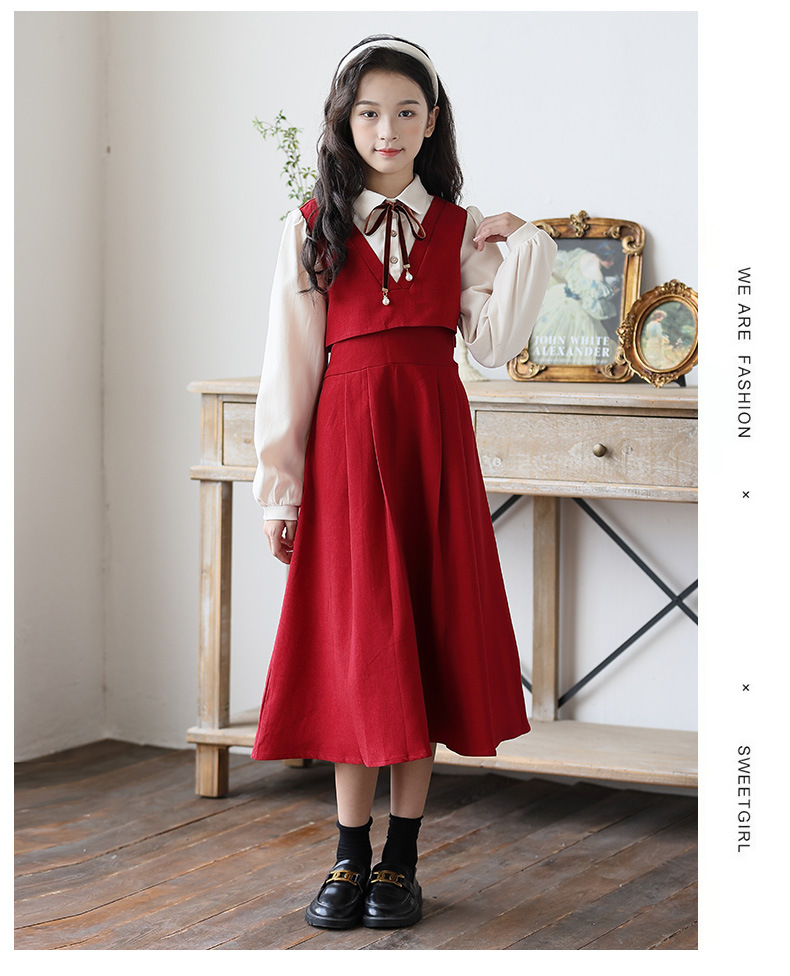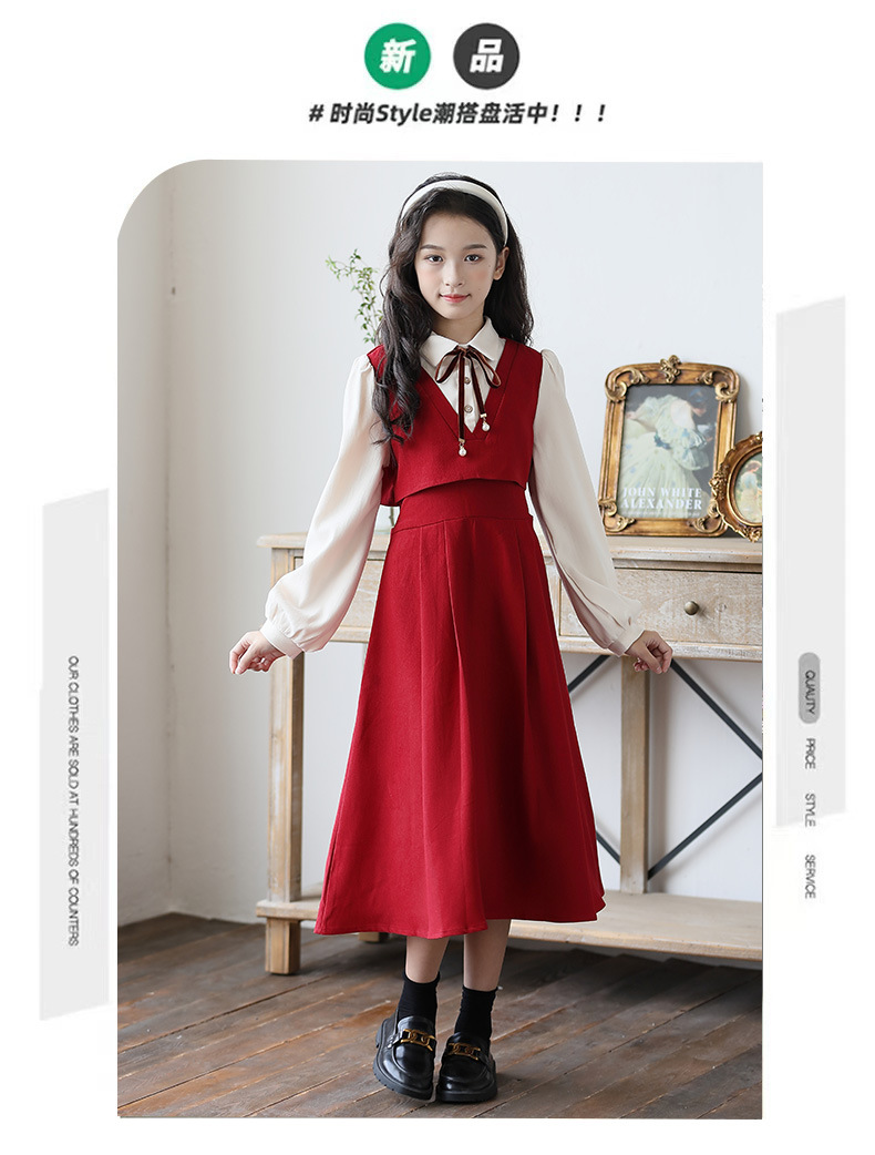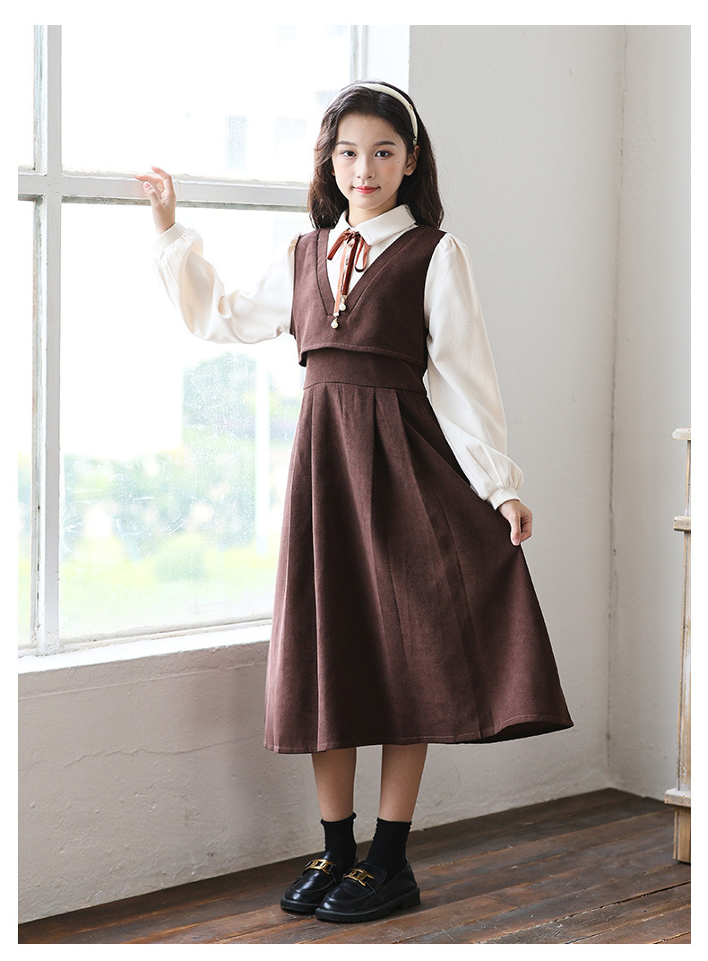 소녀 가을과 겨울 2024 새로운 소녀 달콤한 귀여운 공주 원피스 대학 스타일 셔츠 칼라 가짜 투피스 원피스스토어 가기
