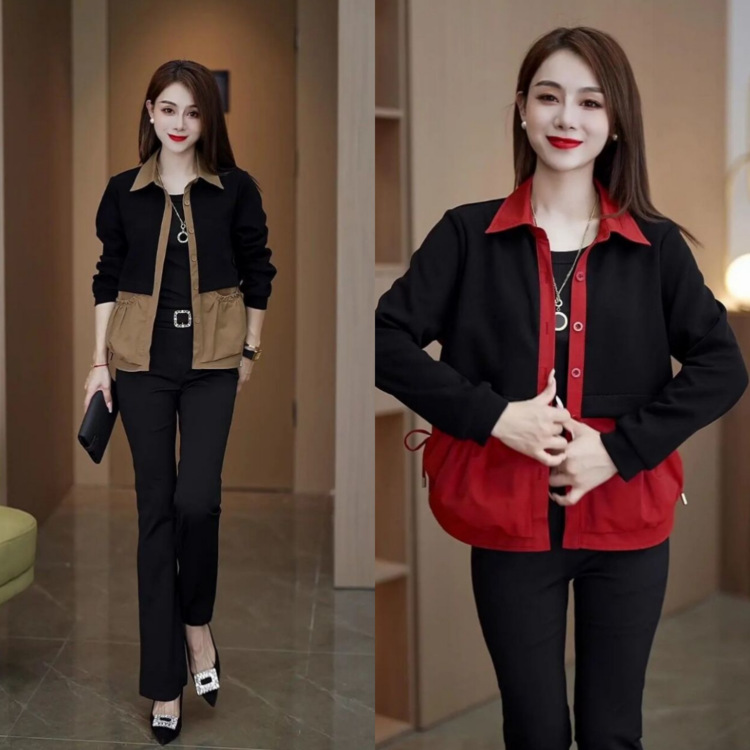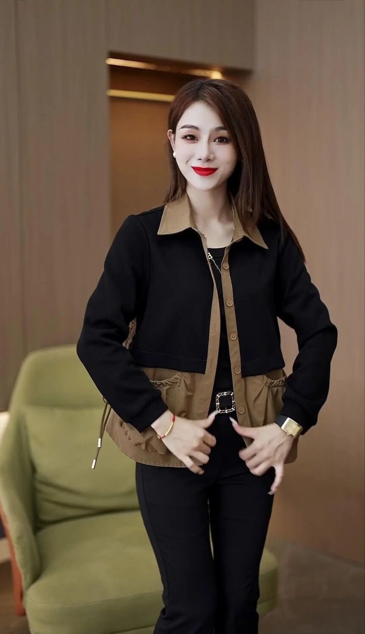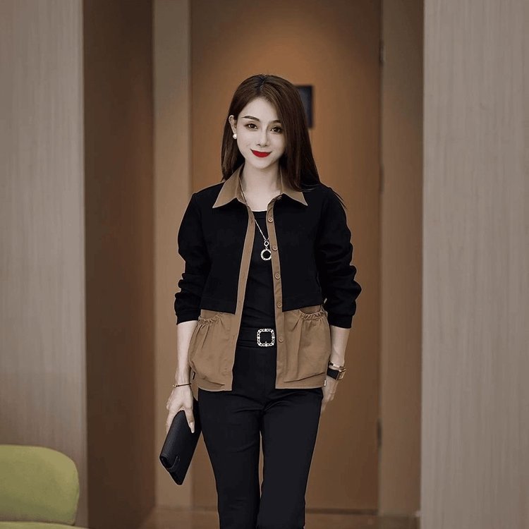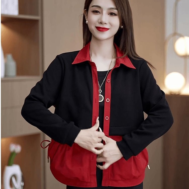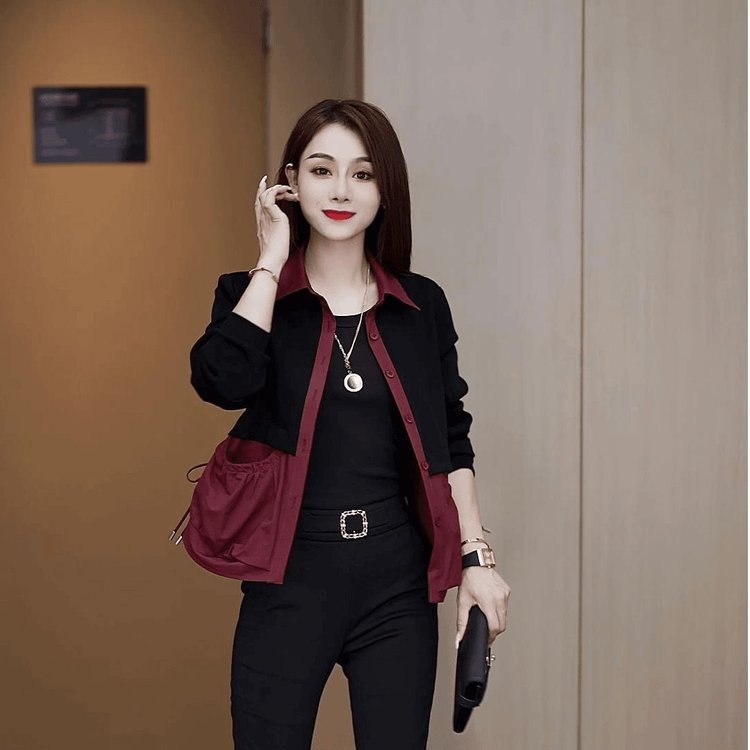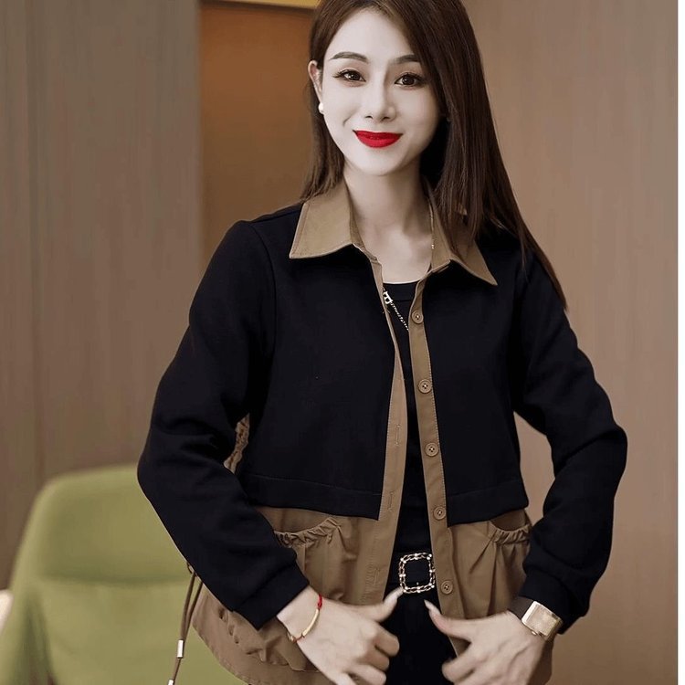 가짜 두 캐주얼 짧은 여성의 봄과 가을 새로운 우아한 슬림 대비 컬러 바느질 재킷 작은 탑