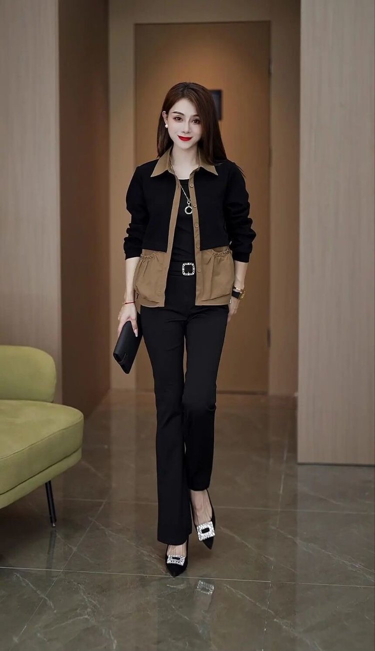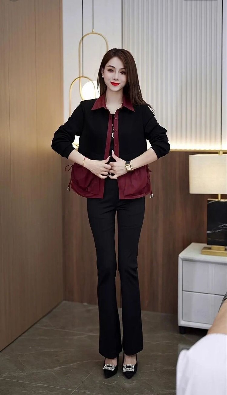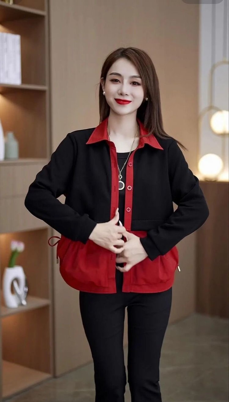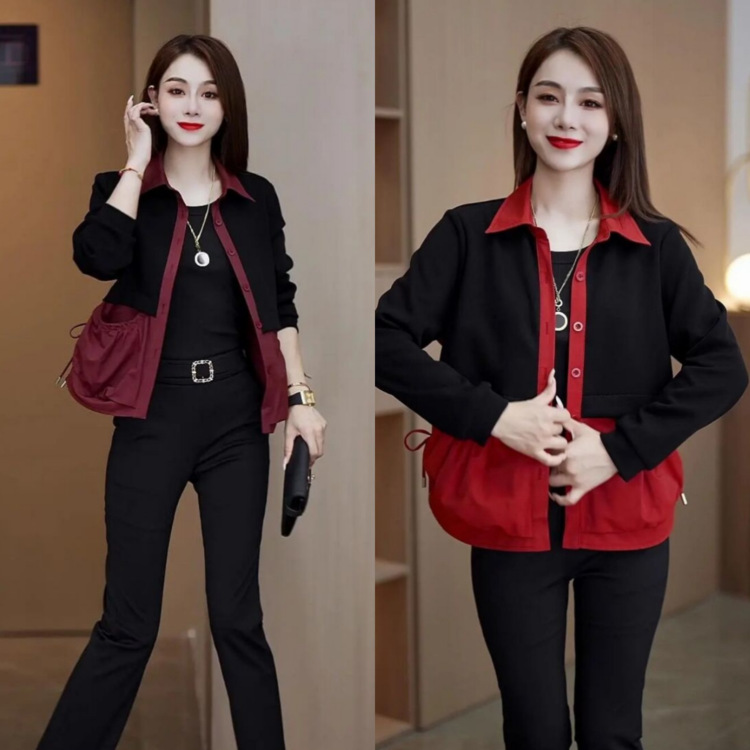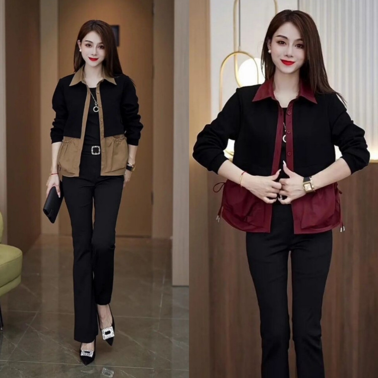 가짜 두 캐주얼 짧은 여성의 봄과 가을 새로운 우아한 슬림 대비 컬러 바느질 재킷 작은 탑