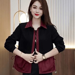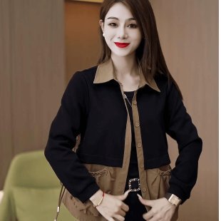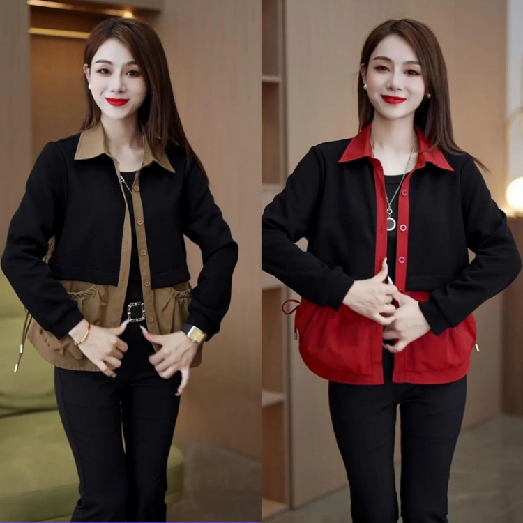 가짜 두 캐주얼 짧은 여성의 봄과 가을 새로운 우아한 슬림 대비 컬러 바느질 재킷 작은 탑스토어 가기