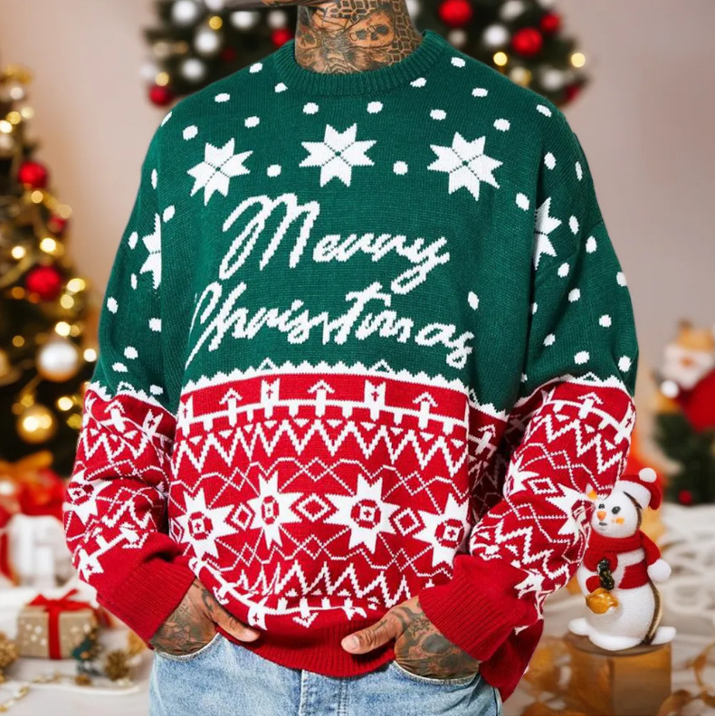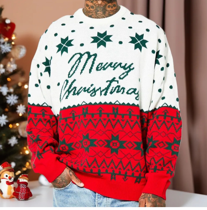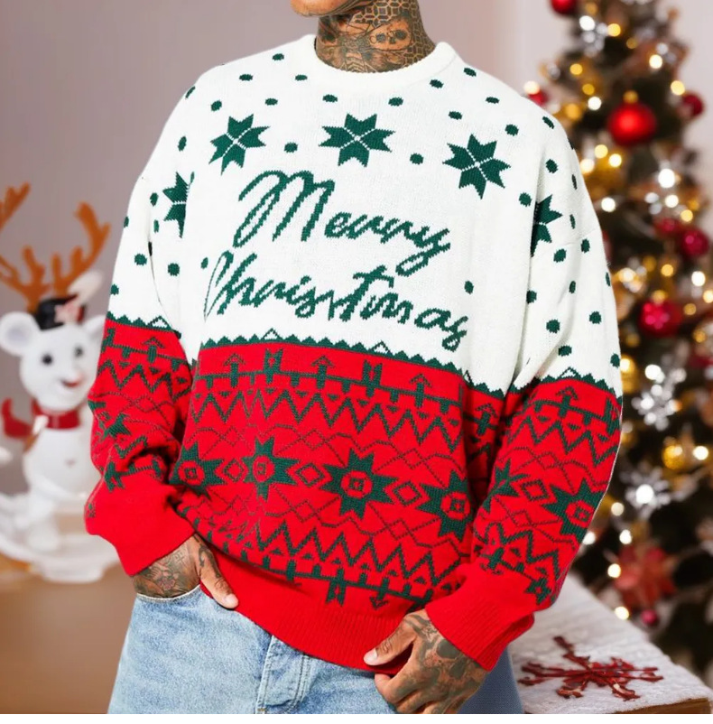 대외 무역 크로스 보더 남성 의류 유럽과 미국의 가을, 겨울 크리스마스 스웨터 크리스마스 자카드 루즈 풀오버 스웨터 SY0063